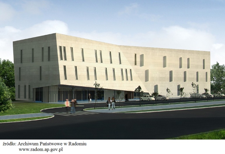 Jak będzie wyglądał nowy budynek? Przedstawiamy komputerową wizualizację udostępnioną dzięki Archiwum Państwowego w Radomiu.