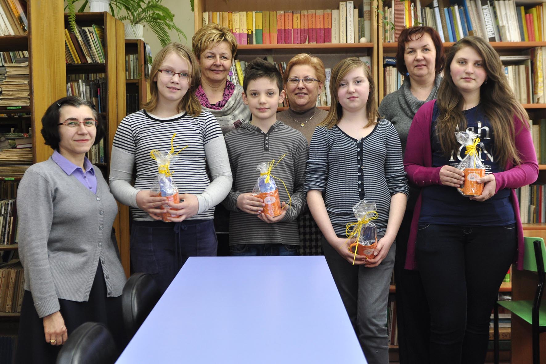 Redakcja "Grochu z kapustą" otrzymała myszki bezprzewodowe, kolorowe słuchawki, głośniki oraz tablet. Uczniowie losowali prezenty z wielkiego worka. Nie spodziewali się, że w środku znajdują się tak fajne nagrody. Adrian wylosował tablet - jakież było jego zaskoczenie, kiedy wyciągnął go z worka. Ci, którzy wylosowali słuchawki, byli zadowoleni, bo okazało się, że właśnie takie były im potrzebne. Uczniowie zadowoleni, opiekun redakcji i dyrekcja dumni - wszystko odbyło się w miłej atmosferze. Spotkanie uwieczniono na zdjęciach.