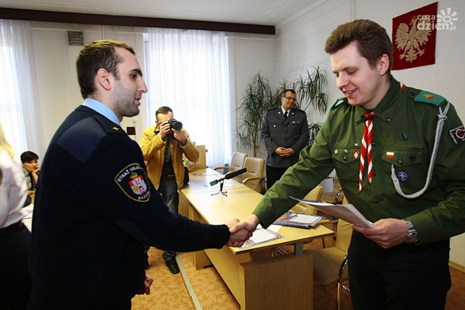 Bartłomiej Bednarczyk-podharcmistrz ZHP Radom-Miasto, na konferencji prasowej przedstawił sumę