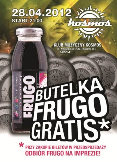 BILETY: Bilety są w przedsprzedaży po 10 PLN i można je nabyć w klubie Kosmos lub kręgielni MK Bowling w Galerii Rosa. Do każdego zakupionego biletu w przedsprzedaży, napój FRUGO dostaniecie w prezencie!!!