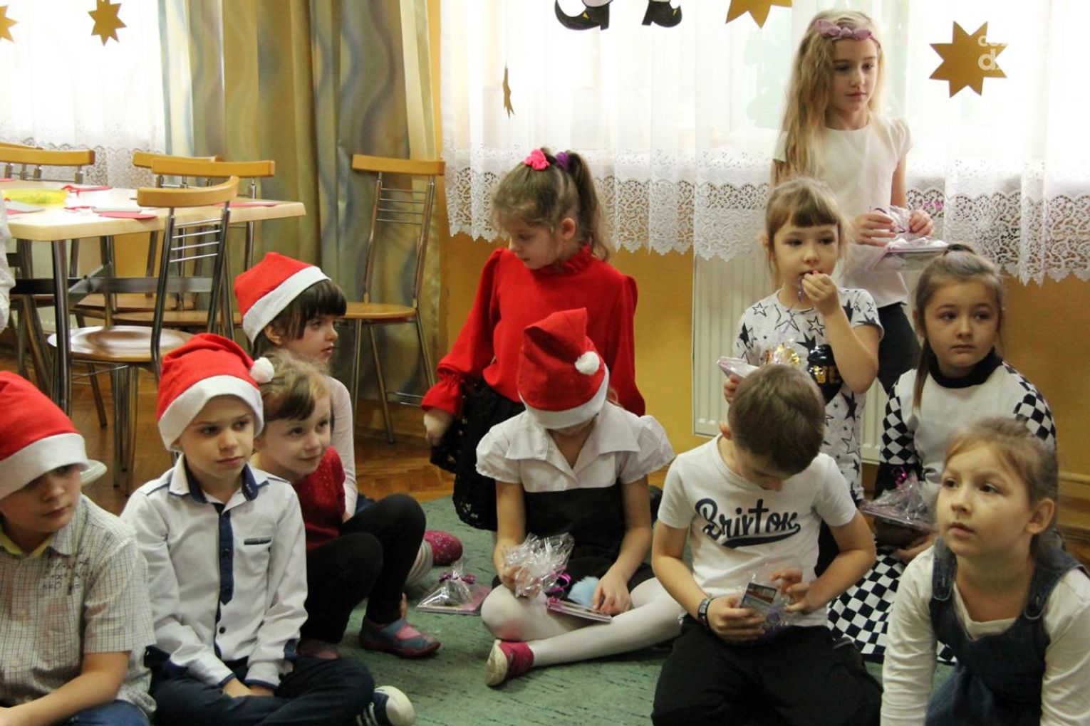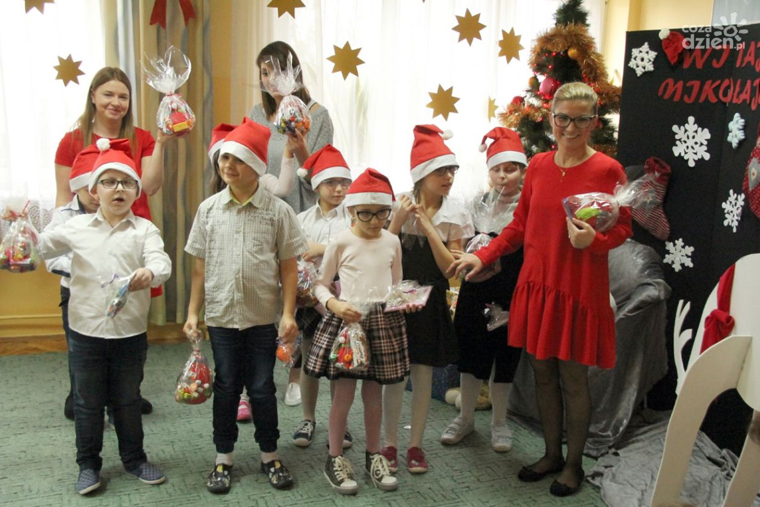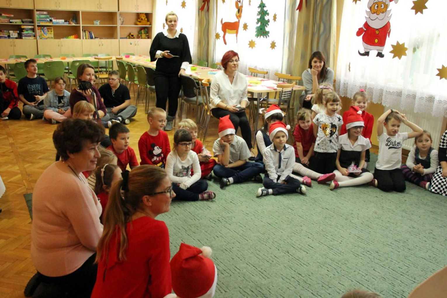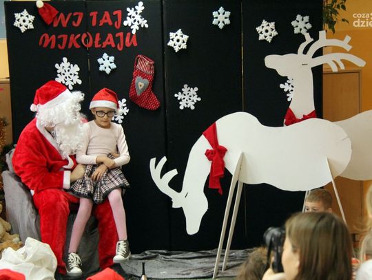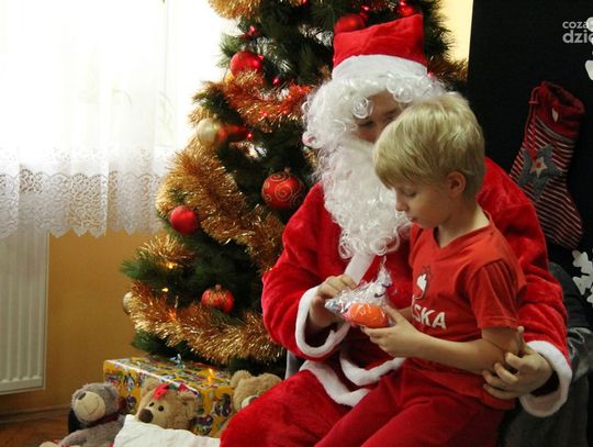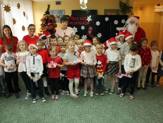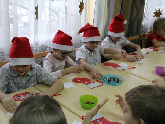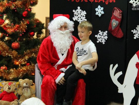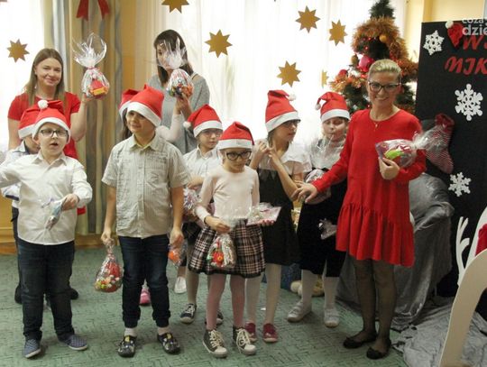 W tym roku na Mikołaja czekało nie lada zaskoczenie, gdyż oprócz dzieci z ośrodka powitały go również najmłodsi z klasy 0a oddziału przedszkolnego PSP nr 34 w Radomiu. Przedszkolaki pod opieką nauczyciela wykonały samodzielnie mikołajki dla małych gospodarzy. Spotkanie było również okazją do wspólnego śpiewania piosenek świątecznych. Urozmaiceniem były zajęcia plastyczne pt. „Buty Mikołaja” – przygotowane i prowadzone przez p. Dorotę Kwatek i Sylwię Górską. Na zakończenie spotkania na wszystkich czekał słodki poczęstunek. Grzeczne dzieci Święty Mikołaj z pewnością odwiedzi już w przyszłym roku.