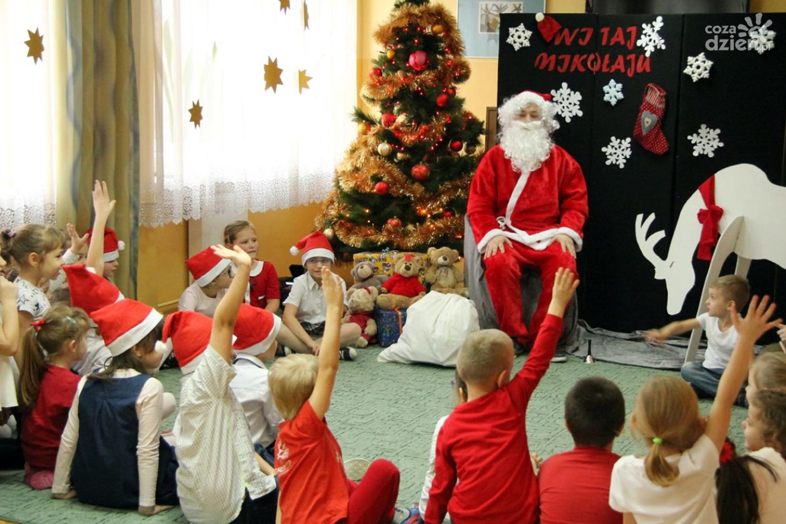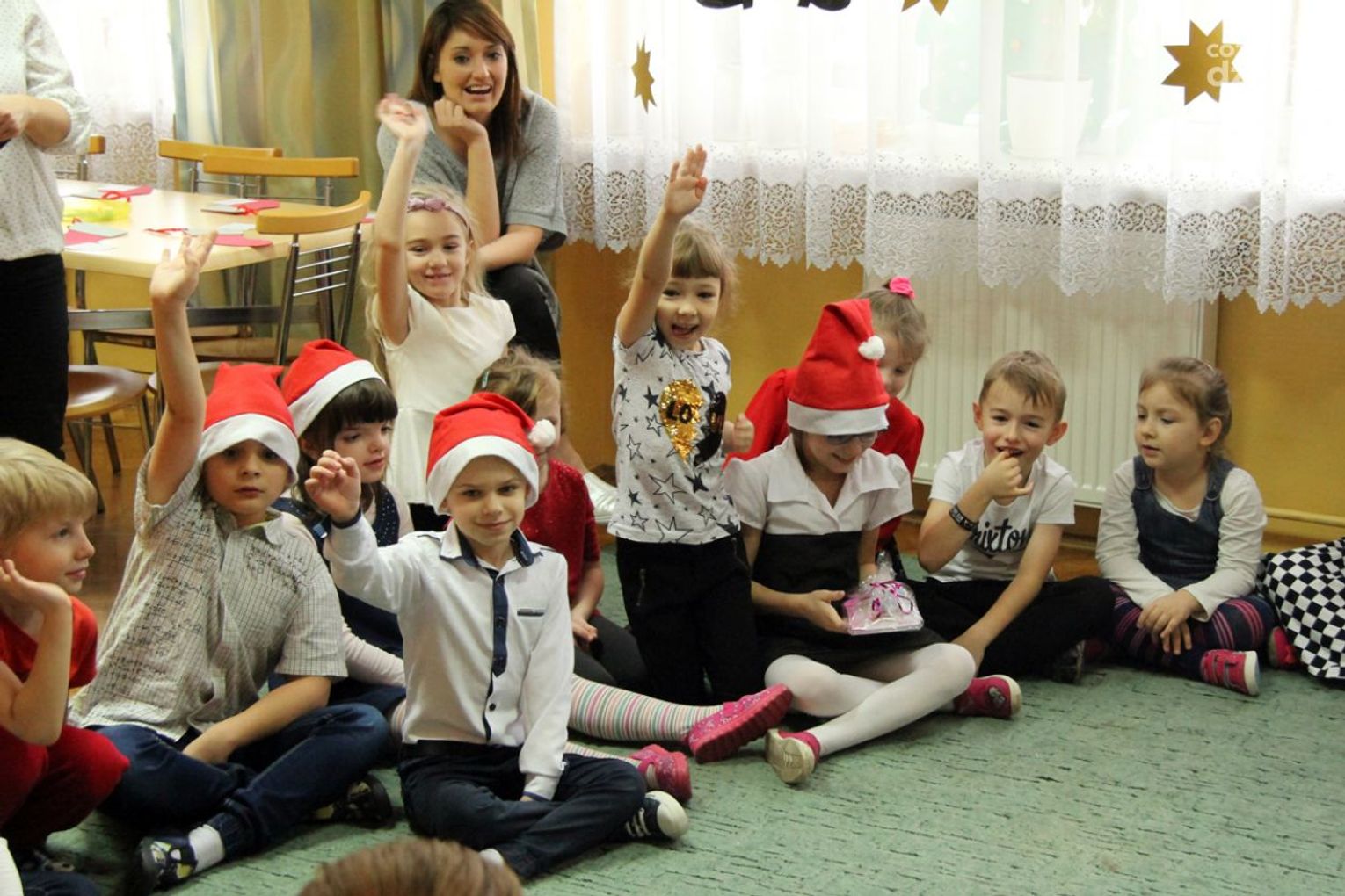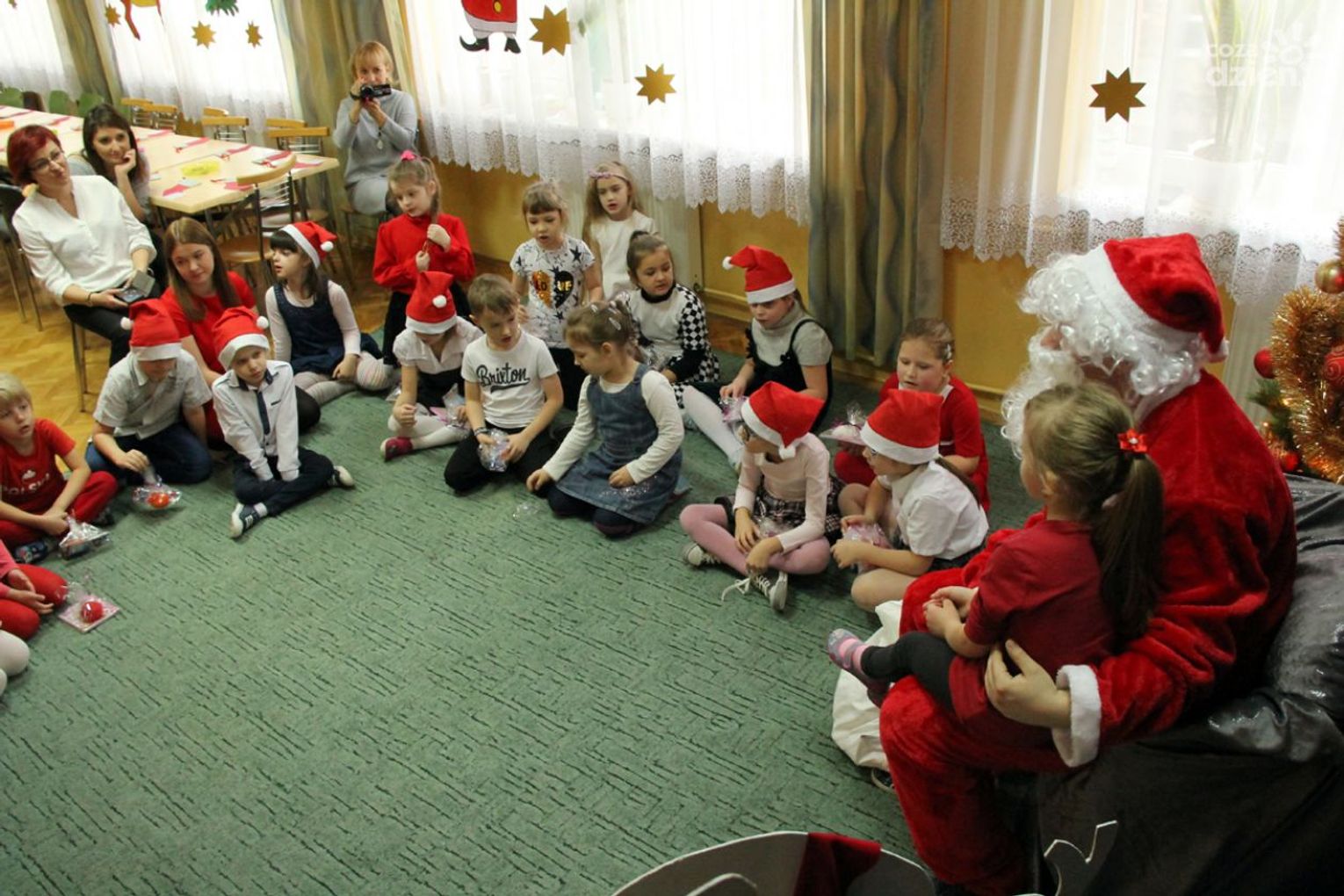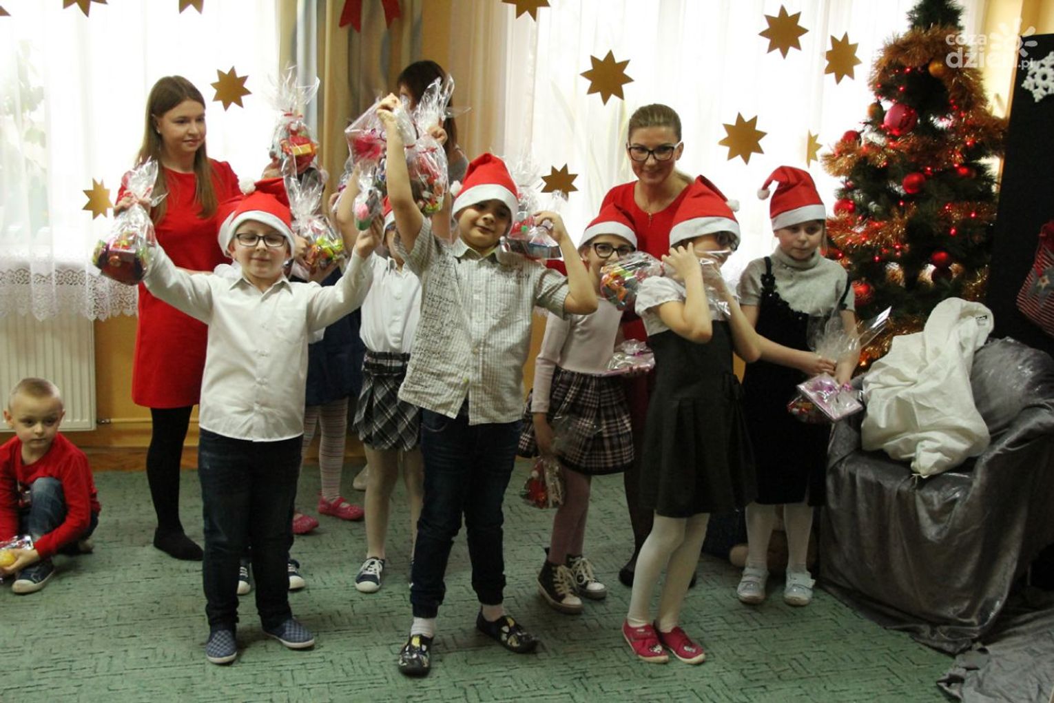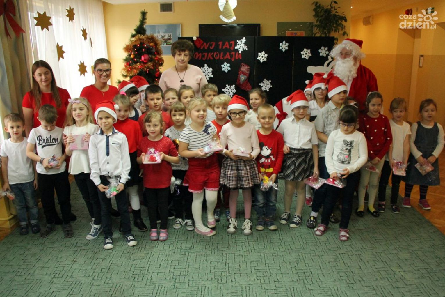 W tym roku na Mikołaja czekało nie lada zaskoczenie, gdyż oprócz dzieci z ośrodka powitały go również najmłodsi z klasy 0a oddziału przedszkolnego PSP nr 34 w Radomiu. Przedszkolaki pod opieką nauczyciela wykonały samodzielnie mikołajki dla małych gospodarzy. Spotkanie było również okazją do wspólnego śpiewania piosenek świątecznych. Urozmaiceniem były zajęcia plastyczne pt. „Buty Mikołaja” – przygotowane i prowadzone przez p. Dorotę Kwatek i Sylwię Górską. Na zakończenie spotkania na wszystkich czekał słodki poczęstunek. Grzeczne dzieci Święty Mikołaj z pewnością odwiedzi już w przyszłym roku.