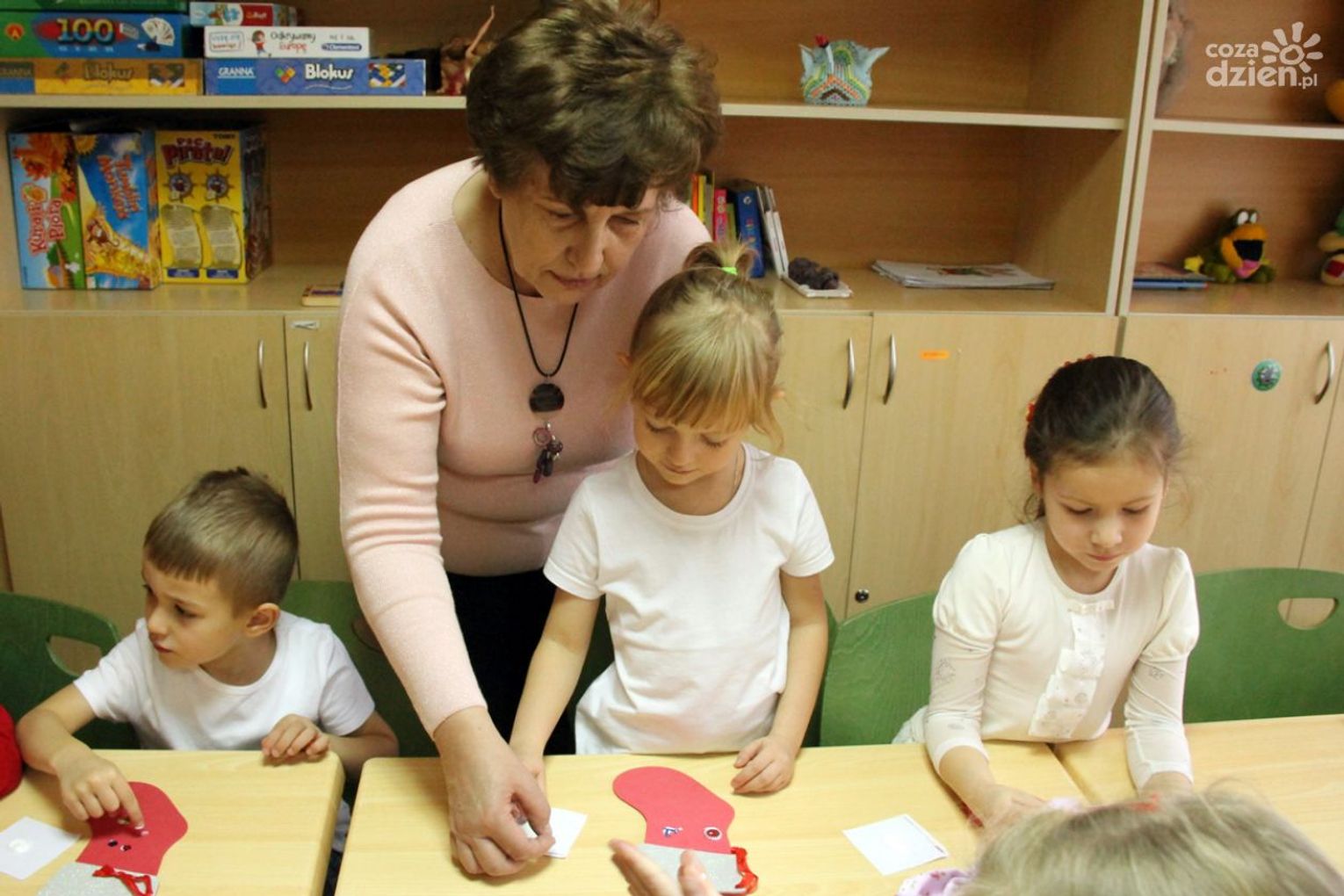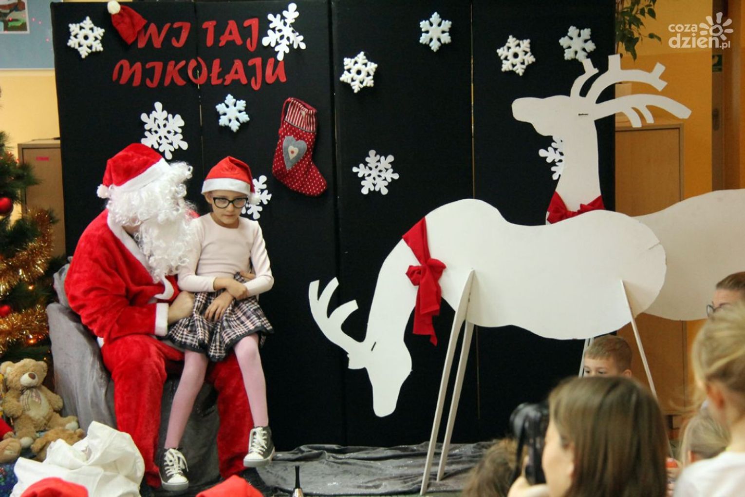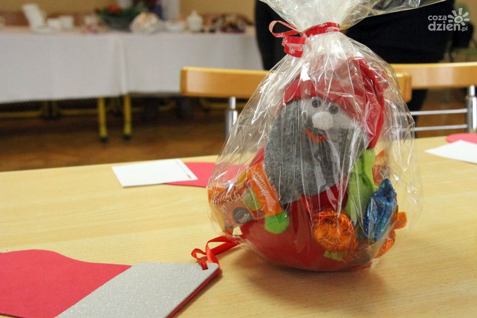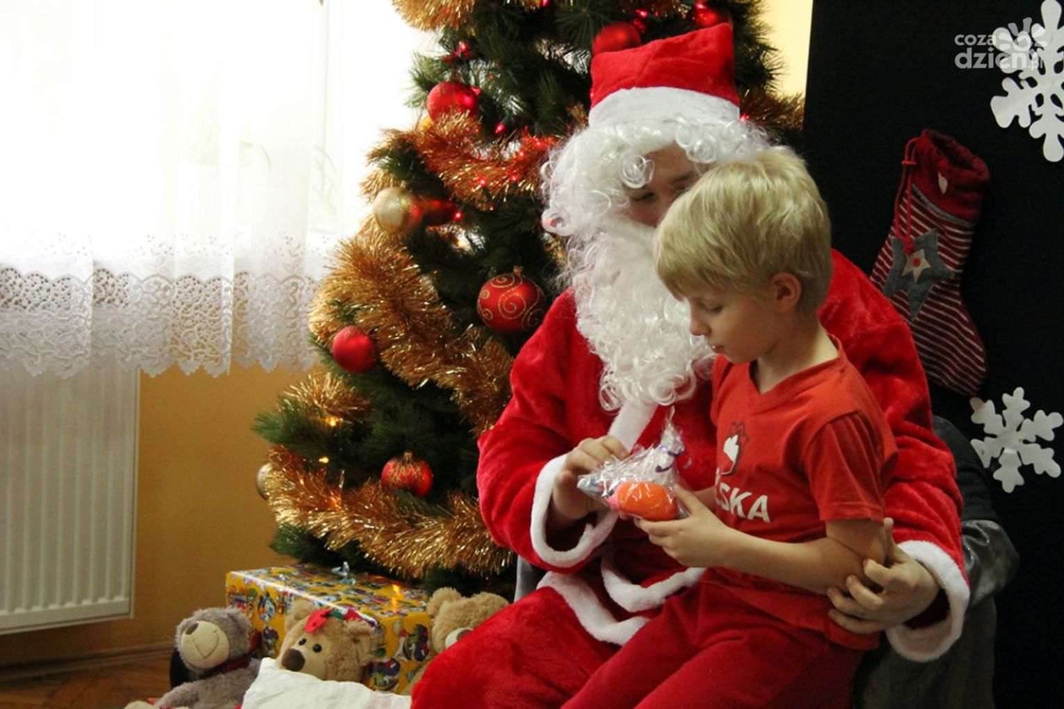 W tym roku na Mikołaja czekało nie lada zaskoczenie, gdyż oprócz dzieci z ośrodka powitały go również najmłodsi z klasy 0a oddziału przedszkolnego PSP nr 34 w Radomiu. Przedszkolaki pod opieką nauczyciela wykonały samodzielnie mikołajki dla małych gospodarzy. Spotkanie było również okazją do wspólnego śpiewania piosenek świątecznych. Urozmaiceniem były zajęcia plastyczne pt. „Buty Mikołaja” – przygotowane i prowadzone przez p. Dorotę Kwatek i Sylwię Górską. Na zakończenie spotkania na wszystkich czekał słodki poczęstunek. Grzeczne dzieci Święty Mikołaj z pewnością odwiedzi już w przyszłym roku.