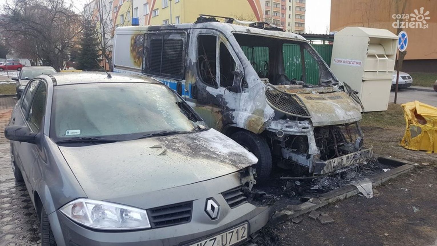 Ok. godz. 4 nad ranem na parkingu przy ul. Batalionów Chłopskich doszło do pożaru. Spłonęły dwa wozy policyjne - jeden bus i jeden samochód operacyjny. Przyczyny pożaru nie są znane.