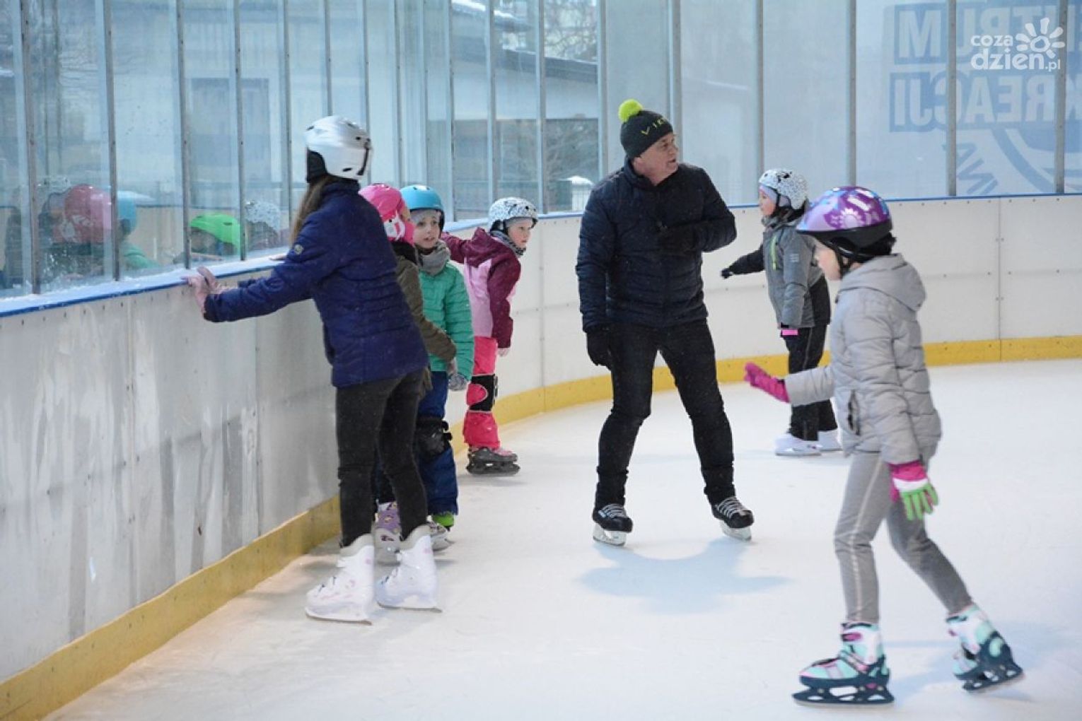 Na lodowisku miejskim odbywa się „Feryjna Nauka Jazdy”. Zajęcia odbywają się w dwóch grupach: początkującej i średniozaawansowanej. W pierwszym tygodniu ferii (12-16 lutego) od poniedziałku do piątku ćwiczyła grupa początkująca. W drugim tygodniu prowadzone są zajęcia dla grupy średniozaawansowanej. Zajęcia prowadza wykwalifikowani instruktorzy: Agnieszka Czerwonka i Dariusz Ocias. Z tej formy spędzania wolnego czasu korzysta blisko 50 dzieci.