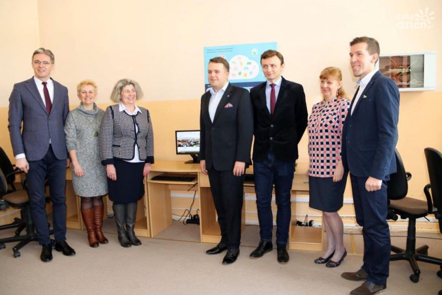 Dziś jedną z nowoczesnych prasowni informatycznych w Szkole Podstawowej nr 1 wizytowali Marszałek Województwa Świętokrzyskiego Adam Jarubas, Prezydent Starachowic Marek Materek, Przewodniczący Rady Miejskiej Michał Walendzik oraz dyrektorzy szkół Jadwiga Kicińska dyrektor SP nr 1, Mścisława Ewa Kłaczkowska dyrektor SP nr 12 oraz Lilianna Adamczyk zastępca dyrektora SP nr 11. W spotkaniu uczestniczyli również kierownik Referatu Edukacji, Kultury, Sportu, Turystyki i Promocji Miasta UM Włodzimierz Jedynak oraz kierownik Referatu Obsługi Informatycznej UM Sebastian Krawczyk.