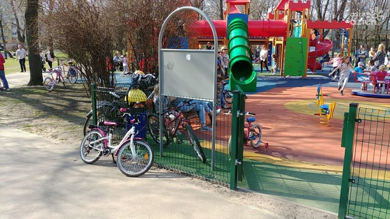Bractwo liczyło, że po tym, jak ktoś odkręcił stojaki, wrócą, ale w inne miejsce. - Niestety, są w tym samym miejscu, zamiast 200 metrów dalej przed nowym placem zabaw migoczącym kolorami. A tam, gdzie ich nie ma, są bardzo potrzebne – przekonuje Pawłowski. - Problem jest o tyle poważny, że niektórzy rodzicie wprowadzają rowery na plac zabaw, a rower z fotelikiem może ważyć nawet ponad 20 kg. Ponieważ foteliki są montowane wysoko, to rower, nawet oparty, jest łatwy do wywrócenia. Co się może stać, gdy upadnie na małe dziecko, można siebie wyobrazić.