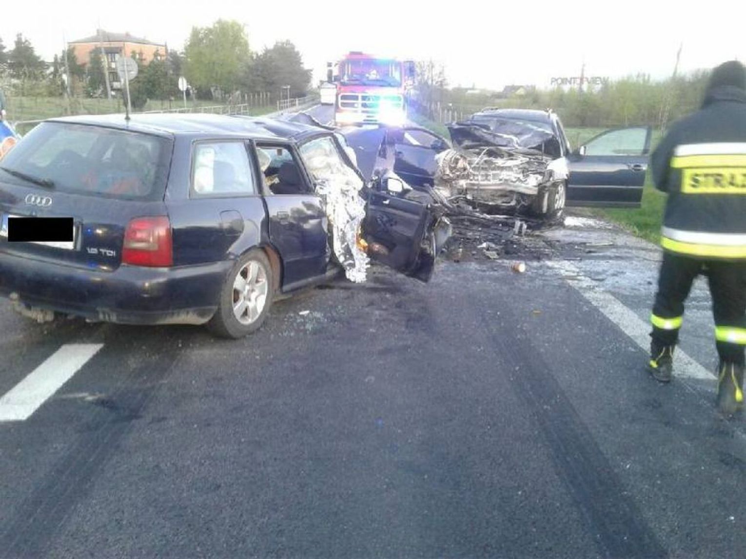 W niedzielę w Witalówce na terenie gminy Pniewy (powiat grójecki, województwo mazowieckie), którędy prowadzi DK-50, zderzyły się dwie osobówki. "W kierunku Żyrardowa jechało audi, którym podróżowało pięć osób narodowości ukraińskiej. W przeciwnym kierunku poruszał się volkswagen passat, w którym były dwie osoby. Około godz. 4.50 doszło do czołowego zderzenia, w wyniku którego pasażer i kierujący audi ponieśli śmierć na miejscu. Pozostali pasażerowie z audi, dwie kobiety i mężczyzna trafili do szpitali. Kierujący oraz pasażerka passata również znaleźli się pod opieką medyczną" - informuje na swojej stronie grójecka policja.