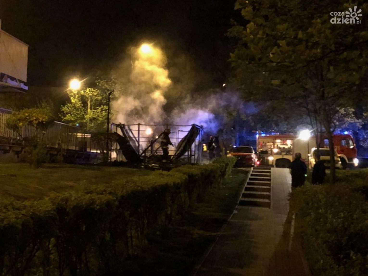 Do groźnie wyglądającego pożaru doszło też wczoraj ok. godz. 1 w nocy w Radomiu, na ul. Paderewskiego przy Biedronce. Płonęła tam wiata śmietnikowa. W sumie spłonęły trzy kontenery ze śmieciami. - W wyniku pożaru zostały tez uszkodzone dwa samochody. osobowe - mówi dyżurny straży pożarnej.