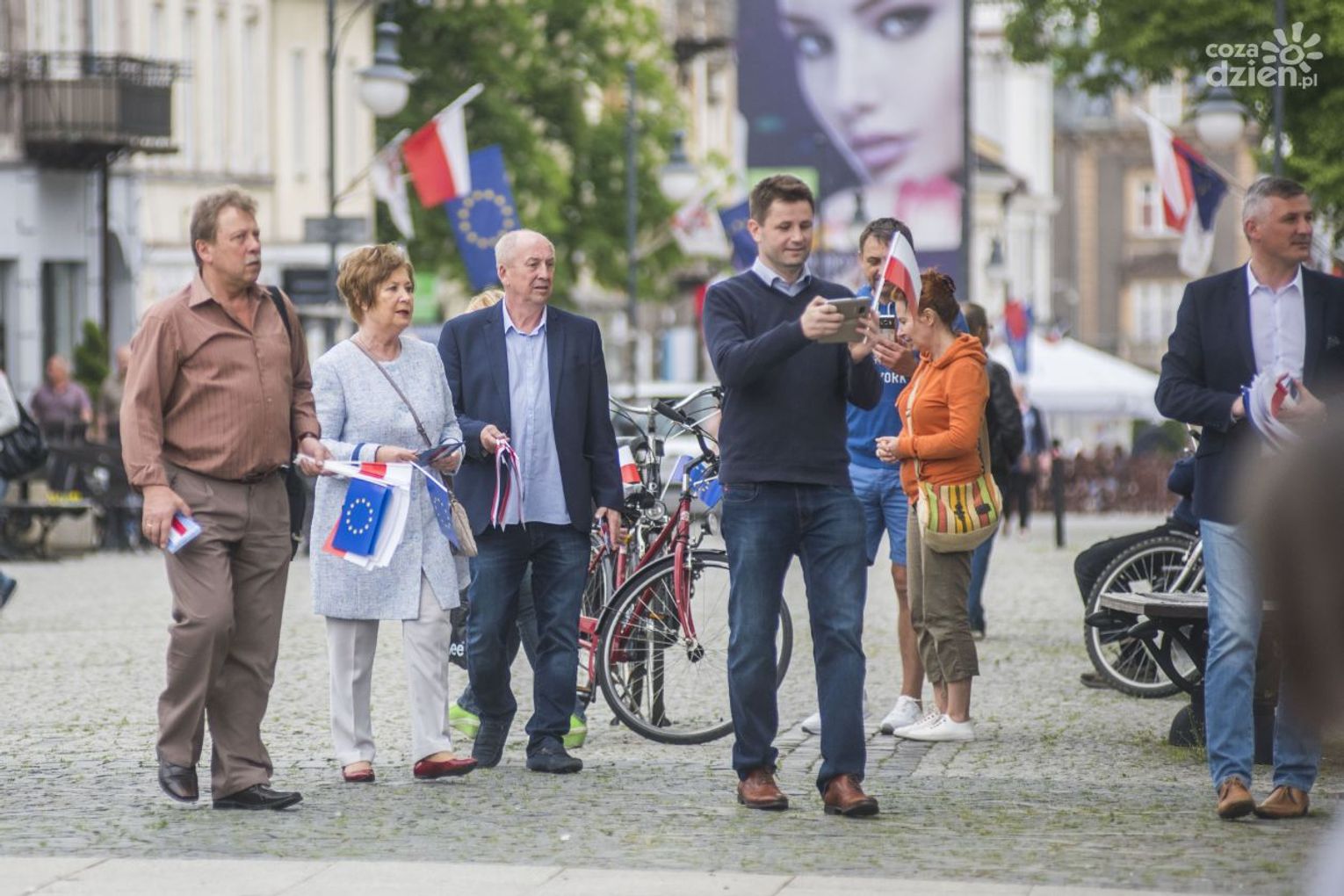 Czyżby lewa strona Radomia przyPOmniała sobie o polskiej fladze? A nie, wtykali przechodniom przy okazji też to niebiesko-żółte ustrojstwo z gwiazdkami euro-sojuza...