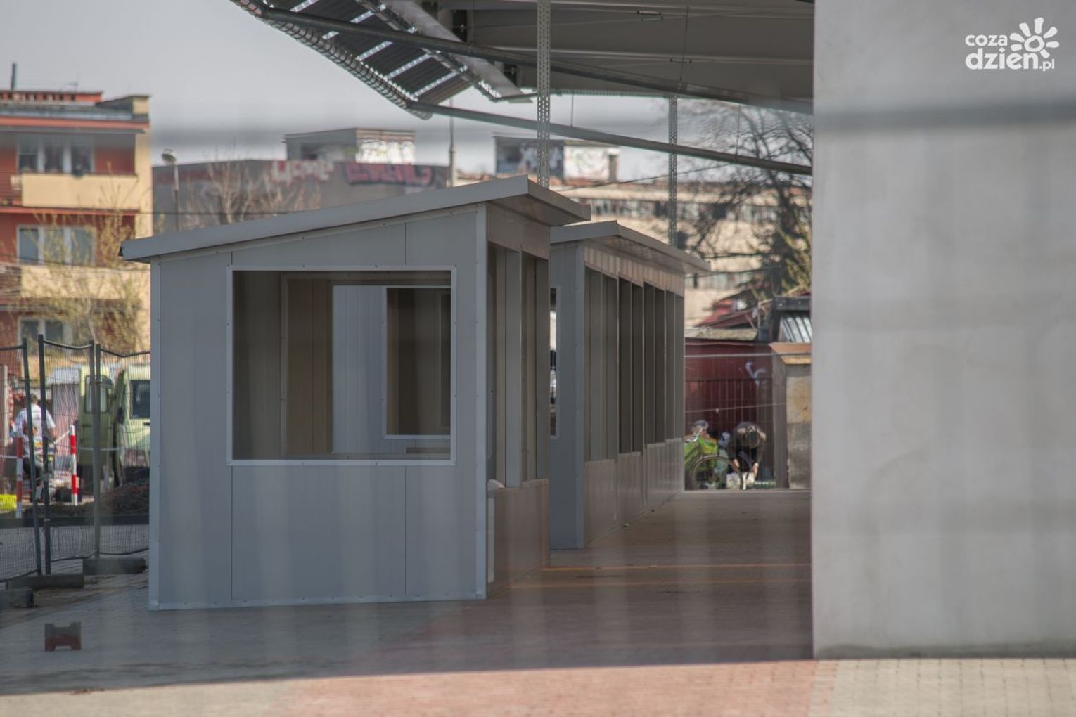 Pod koniec ubiegłego roku firma Rosa Hale podjęła się wybudowania dwóch wiat na terenie targowiska przy ul. Śląskiej. Większą z nich postawiono na terenie dzierżawionym od miasta, druga, mniejsza stoi na terenie należącym do Spółki Feniks.