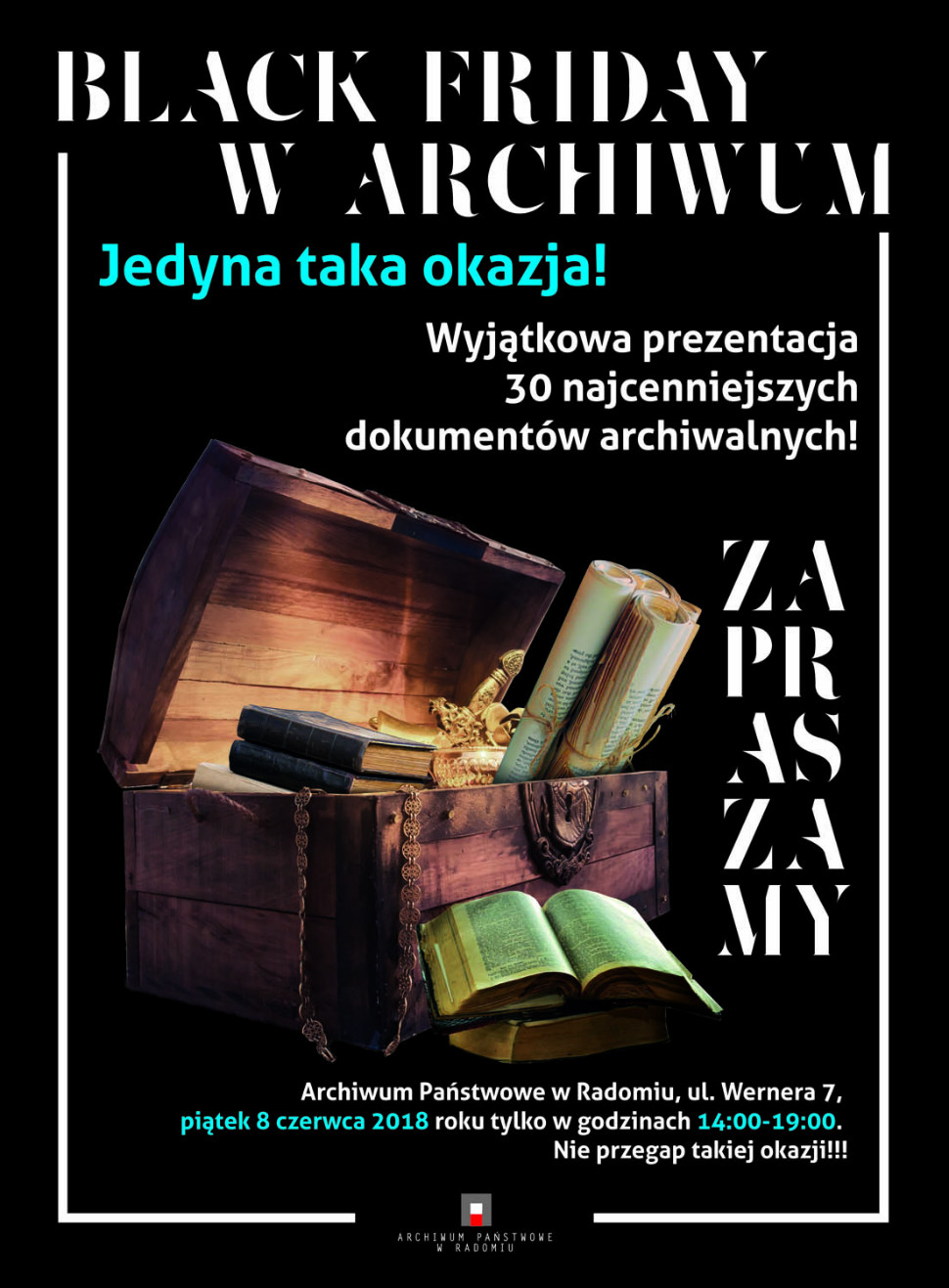 Przywilej Stanisława Augusta Poniatowskiego ustanawiający łan wybraniecki, księgi opisów dóbr rządowych, pergaminy z XIV-XVIII wieku, stare mapy i plany, plakaty z czasów okupacji okupacji niemieckiej czy nalepki piwne i plakat z browaru Saskiego – nic dziwnego, że Archiwum Państwowe wystawę, dającą możliwość obejrzenia takich unikatów, zatytułowało „Black Friday”. Dlatego warto zajrzeć dzisiaj, między godz. 14 a 19, do AP. Wstęp wolny.