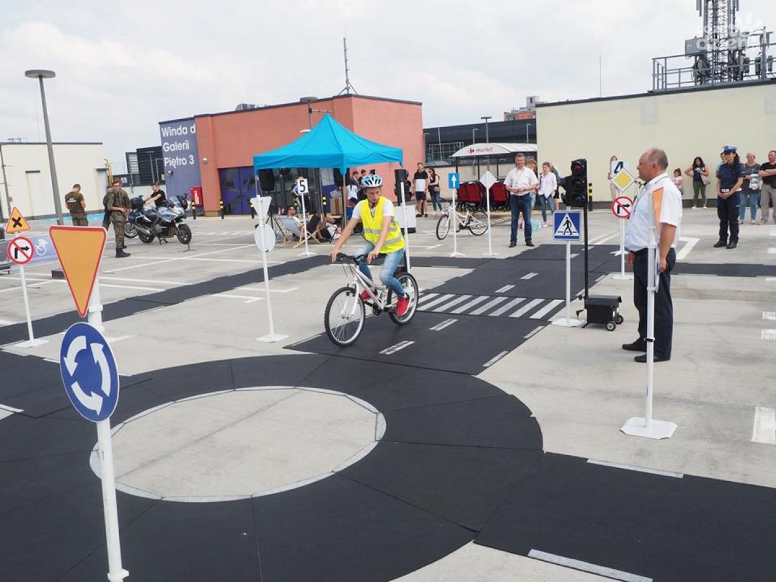 Po sprawdzeniu wyników testu, na parkingu górnym Galerii Słonecznej, odbyła się część praktyczna, w której jeden przedstawiciel drużyny miał do pokonania wyznaczoną trasę po rowerowym miasteczku drogowym.