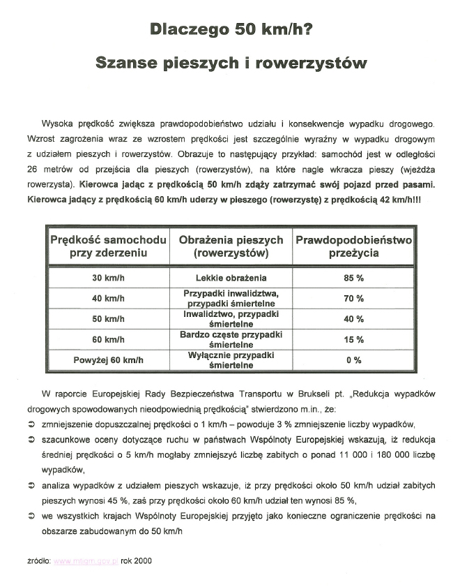 Pomimo ciągłej poprawy stanu bezpieczeństwa w ruchu drogowym na uwagę zasługuje fakt, że ryzyko utraty życia na naszych drogach przez niechronionych uczestników ruchu drogowego jest dwukrotnie większe niż średnia europejska.
