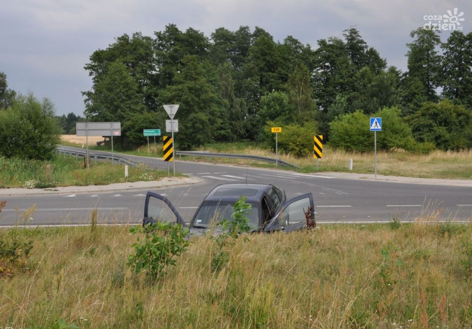 W czwartek, 12 lipca dyżurny policji otrzymał zgłoszenie, że na skrzyżowaniu dróg W727 i 729 do rowu wjechał opel, a kierująca pojazdem może być pod wpływem alkoholu. Jak ustalili policjanci, pojazdem kierowała 37-letnia mieszkanka gminy Klwów, która podróżowała z dorosłym pasażerem. Jak się okazało, kierująca pojazdem nie zachowała należytej ostrożności podczas wyjazdu ze skrzyżowania, w wyniku czego wjechała do rowu. Obrażeń ciała doznał pasażer pojazdu, który został przewieziony do szpitala. Gdy policjanci zbadali jej stan trzeźwości, wyszło na jaw, że jest nietrzeźwa. W organizmie miała ponad 3 promile alkoholu, od razu straciła prawo jazdy.