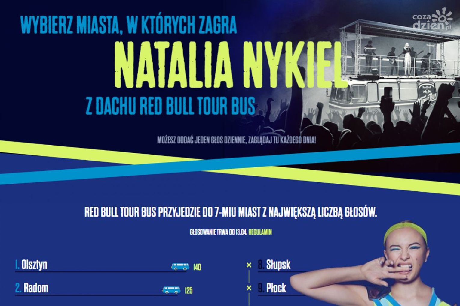 Głosowanie potrwa do 13 kwietnia do godz. 13. Głosować można codziennie. - Ściągnijmy wspólnymi siłami Natalię z zespołem do naszego miasta. To kolejna okazja do tego, aby radomianie pokazali swoje zaangażowanie. Jeszcze w tym roku wspólnie możemy bawić się podczas tego koncertu. Wystarczy codziennie, przez dwa tygodnie, oddawać swój głos na Radom. Naprawdę warto, bo koncert nie wiąże się dla miasta z żadnymi kosztami. Gorąco wszystkich zachęcam – mówił Mateusz Tyczyński, dyrektor Kancelarii Prezydenta.