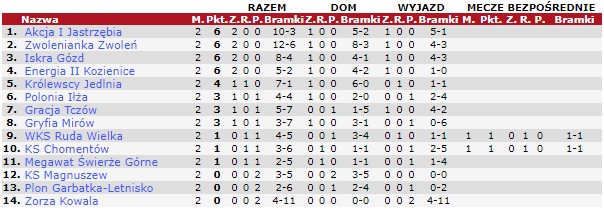 W grupie pierwszej efektowne zwycięstwo odniosła Zwolenianka. Wbicie ośmiu bramek Zorzy, przy czym sześciu w drugiej połowie, to spory wyczyn. Łącznie w Zwoleniu padło aż 11 goli. Z kolei po sześć bramek zobaczyliśmy w Tczowie i w Jedlni. Po sześć bramek padło też w dwóch meczach grupy drugiej. Mogielanka pokonała Wulkan Zakrzew 5:1, a Zodiak Sucha wygrał 5:1 w Tarczowie. Zwycięstwo w pierwszym ligowym meczu odniósł Drogowiec Jedlińsk. Drugą wygraną odnieśli piłkarze Oronki Orońsko.