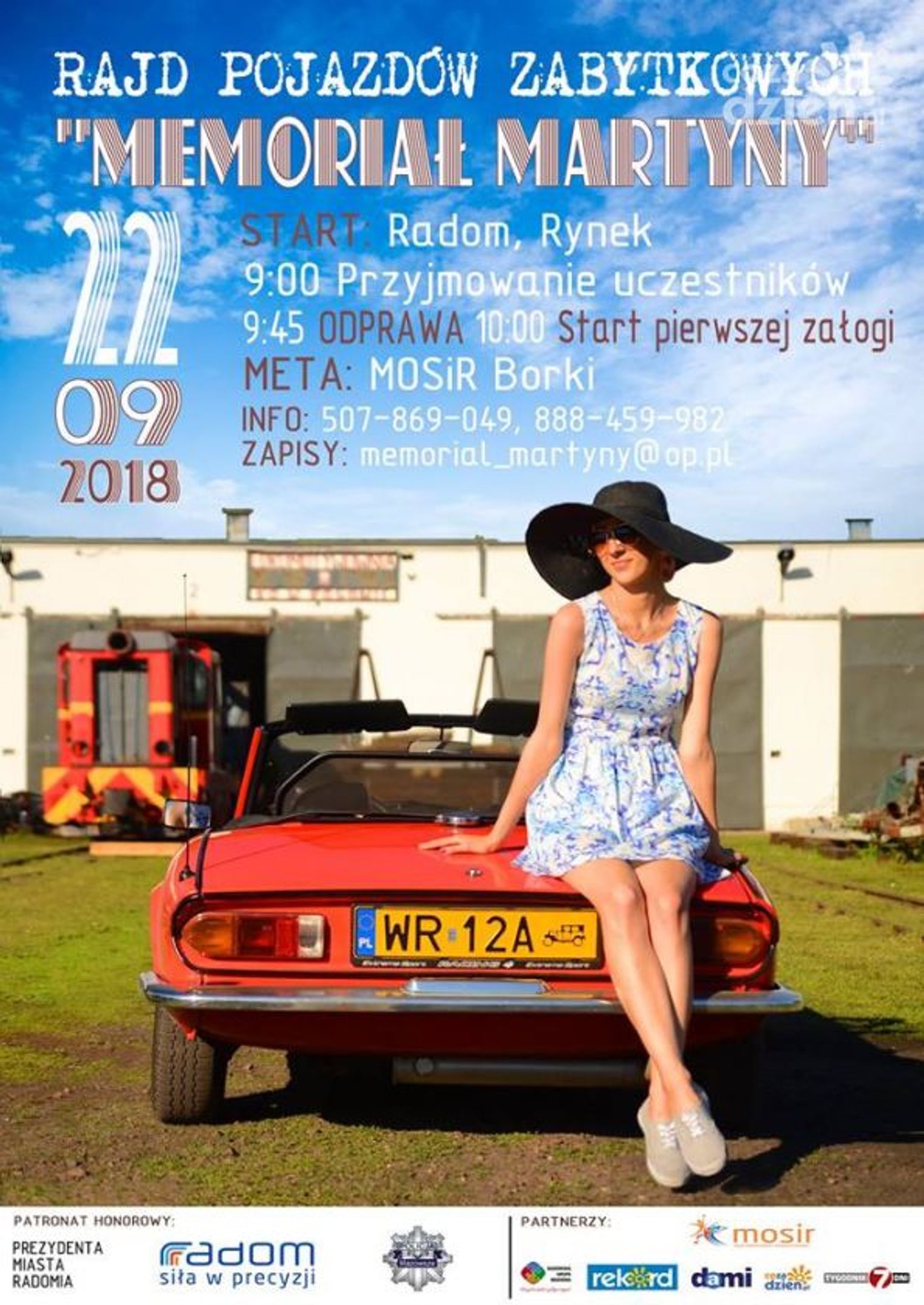 Memoriał rozpocznie się o godzinie 9 na Rynku, zbiórką uczestników rajdu pojazdów zabytkowych. Po odprawie i omówieniu trasy rajdu, na godz. 10 zaplanowano start pierwszej ekipy. W sumie w rajdzie weźmie udział 50 załóg z całej Polski. W wydarzeniu mogą brać udział auta wyprodukowane do 1990 roku. Trasa liczy blisko 100 kilometrów i prowadzić będzie po malowniczych terenach Radomia oraz okolic. Metą rajdu będzie teren MOSiR na zalewem na borkach. Tam też odbędzie się spotkanie integracyjne uczestników "Memoriału Martyny".