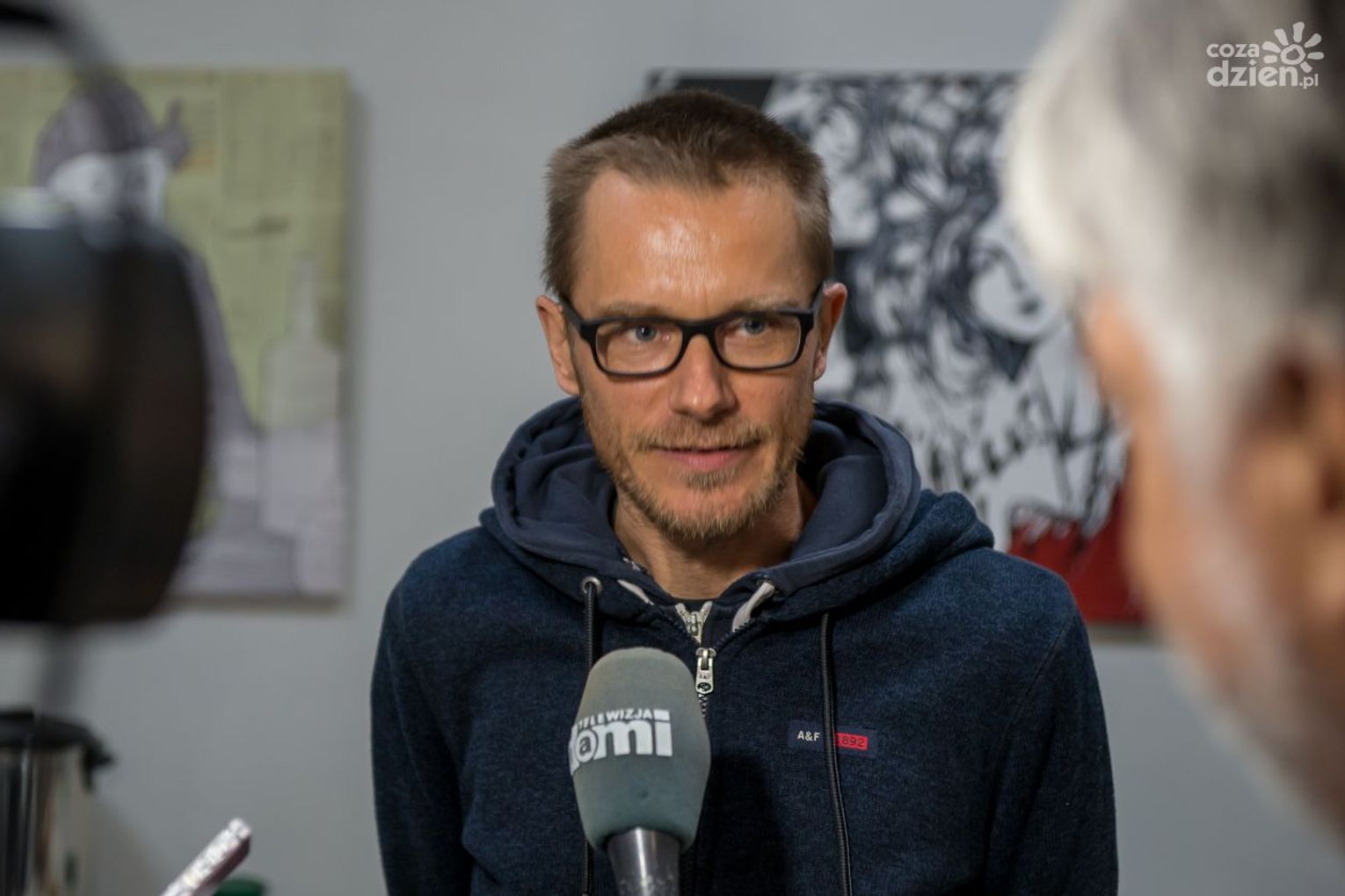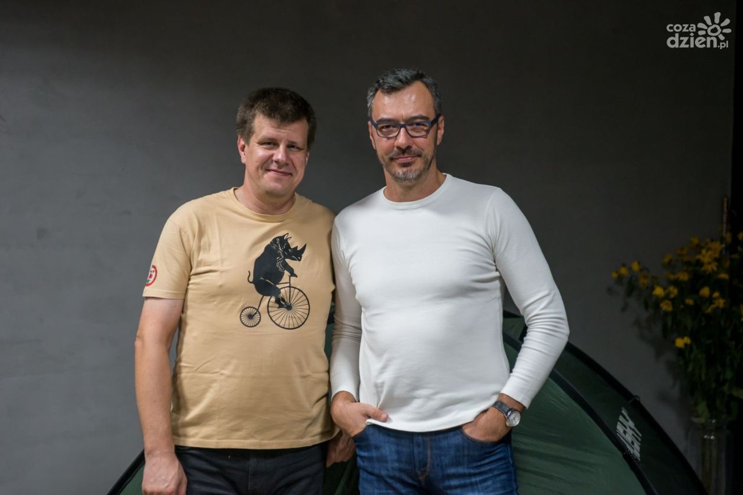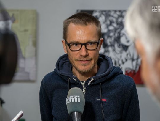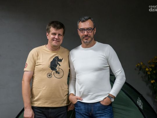 Gościem pierwszej części spotkania będył Piotr Strzeżysz, który był w wielu miejscach na świecie, ale ciągle coś go gdzieś pcha. Zazwyczaj wybiera miejsca wypełnione otwartą przestrzenią, bo uważa, że łatwiej tam bujać w obłokach. Uwielbia kawę, koty, wiatr i Muminki. Autor czterech książek, m.in. „Powidoków”, nagrodzonych Bursztynowym Motylem i nagrodą Magellana.