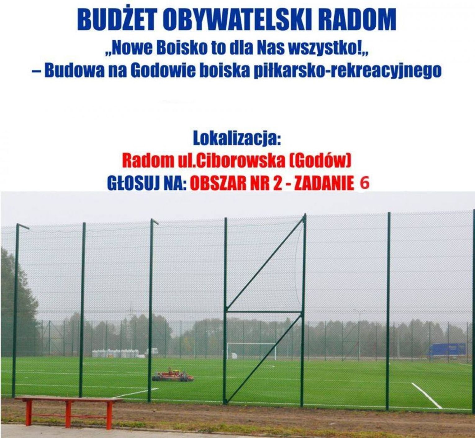 Biuletyn Informacji Publicznej dla Radomia informuje, że rozstrzygnięto przetarg na opracowanie dokumentacji projektu budowy piłkarskiego boiska przy ul. Ciborowskiej. Oznacza to, że projekt, dzięki któremu Centrum Radom przeniesie się na własne boisko na Godowie, jest coraz bliższy realizacji. Przypomnijmy, że projekt zostanie zrealizowany w ramach Budżetu Obywatelskiego.