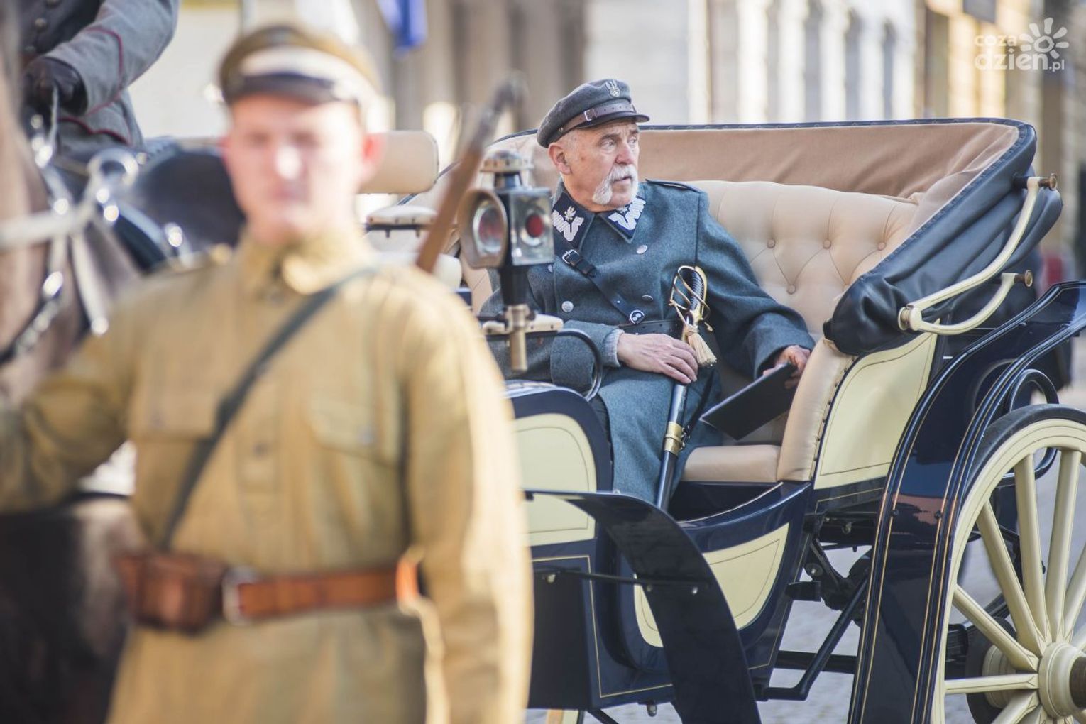 Następnie uczestnicy XIV Marszu Niepodległości „Najdzielniejszy z dzielnych”, przeszli z katedry na pl. Konstytucji 3-go maja gdzie odbyła się część oficjalna. Marsz prowadziła Orkiestra Grandioso oraz ułani ze Szwadronu Radomskiego 11 Pułku Ułanów Legionowych na koniach. W kolumnie ułanów w zabytkowej bryczce prowadzony był sam Józef Piłsudski, w którego rolę wcielił się Adam Wasilewski, emerytowany dyrektor LO im. Jana Kochanowskiego.