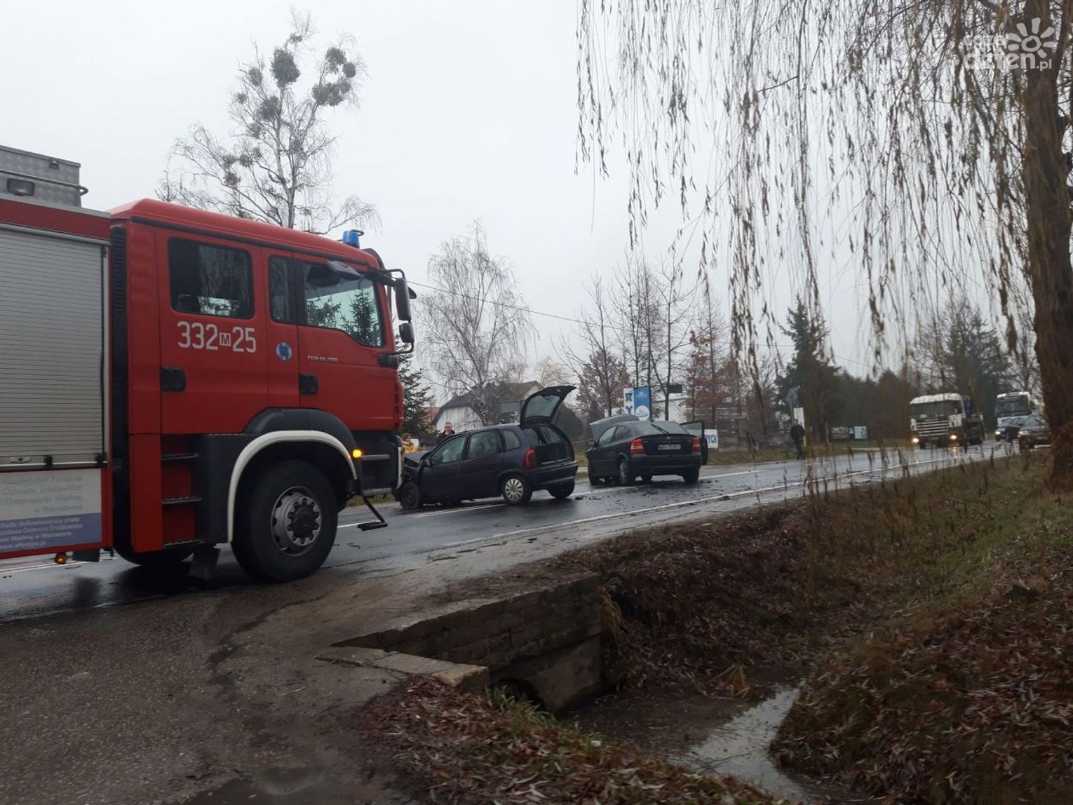 W wyniku wypadku jedna osoba została przewieziona do szpitala. Miejsce zdarzenia zabezpieczają 4 zastępy straży pożarnej. Przyczyny wypadku bada policja.