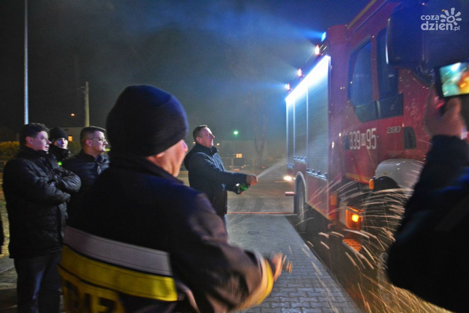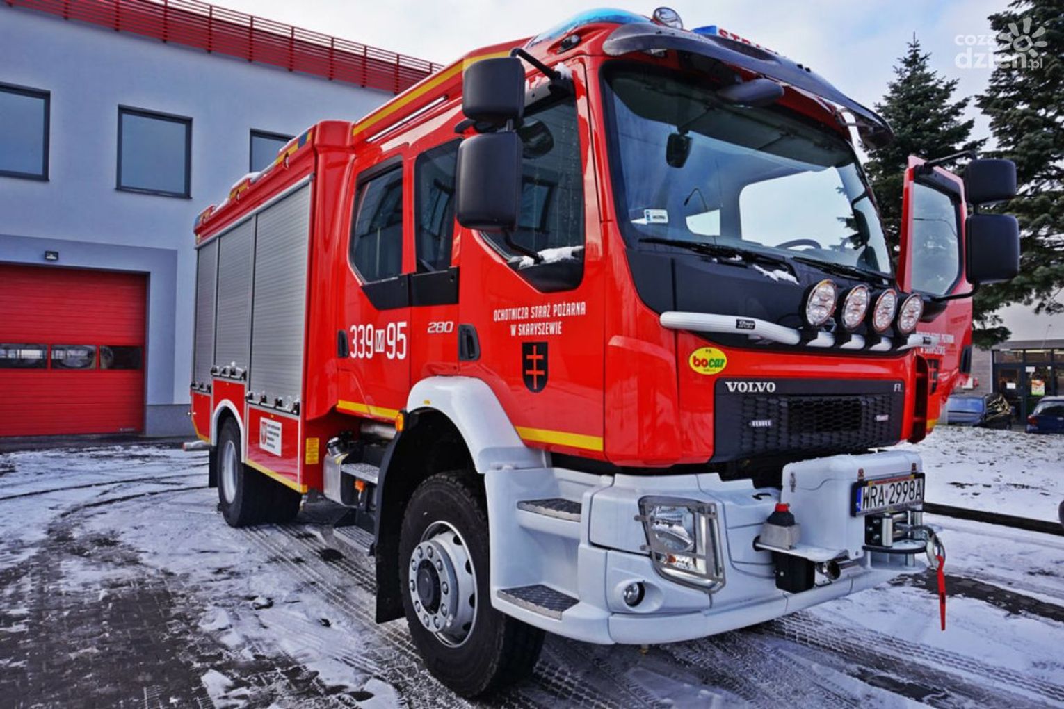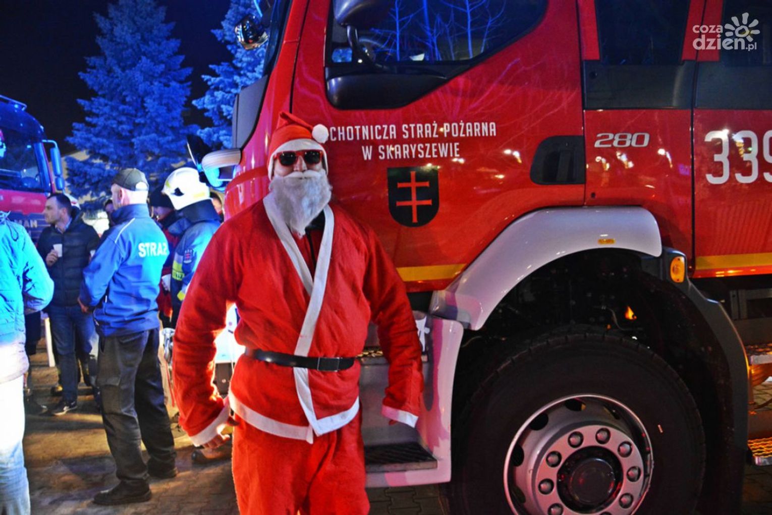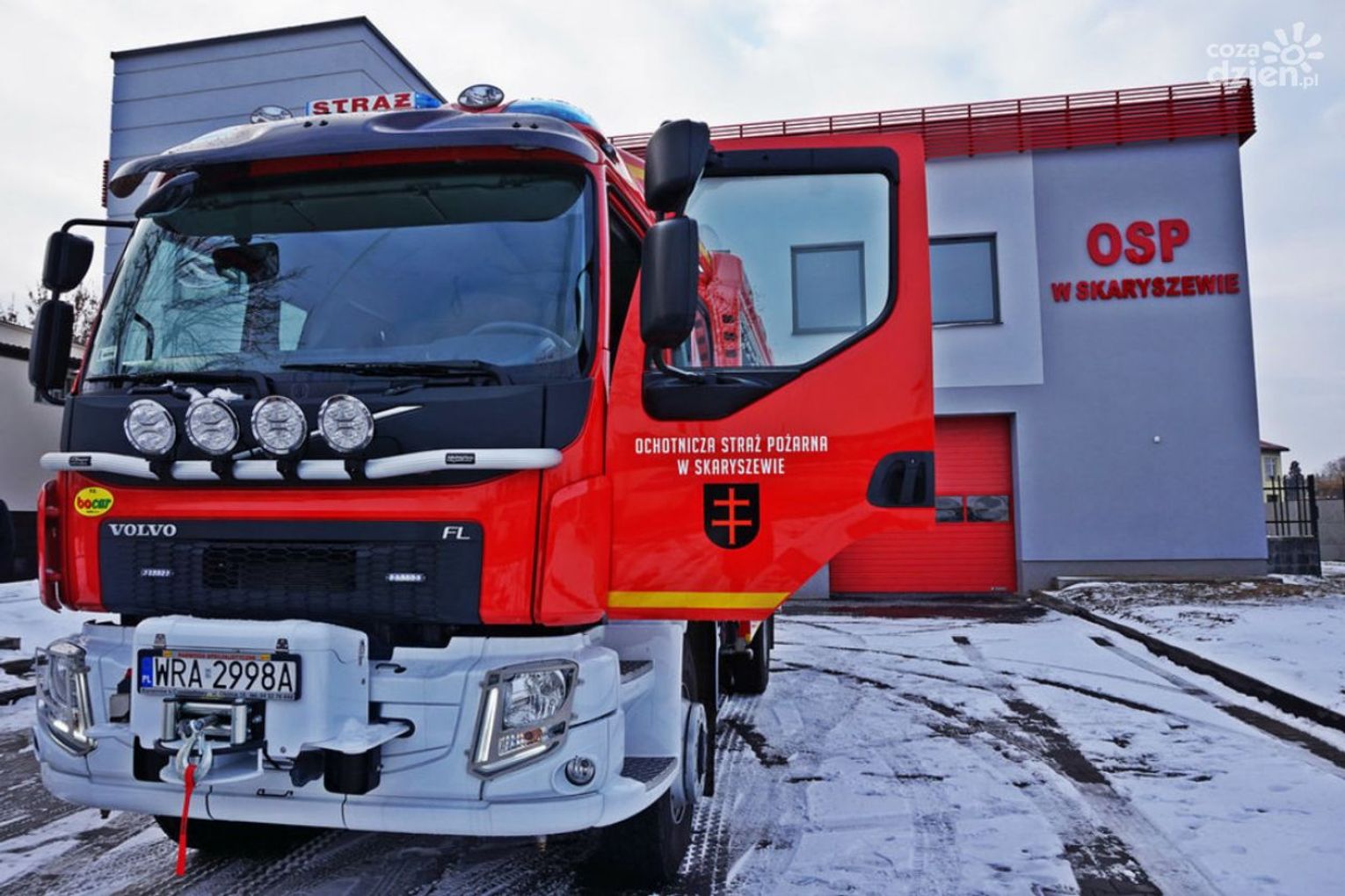 Kilka minut po godz. 19, przed remizą strażacką odbyło się oficjalne przywitanie nowego samochodu ratowniczo-gaśniczego. Pojazd został przyprowadzony do remizy przez strażackiego „Mikołaja”. Przed jednostką zgromadziło się liczne grono strażaków, tych starszych i tych zaczynających strażacką przygodę oraz zaproszeni goście by zobaczyć najnowszy nabytek. Gdy pojazd pojawił się na horyzoncie zgodnie ze strażacką tradycją została uruchomiona syrena. Naprzeciw nadjeżdżającemu pojazdowi wyszli strażacy z racami świetlnymi i dymnymi. Symbolicznego chrztu samochodu dokonał naczelnik jednostki dh Paweł Tuzinek. Zadowolenia z nowego wozu w Gminie Skaryszew nie kryli były burmistrz Skaryszewa Pan Ireneusz Kumięga, obecny burmistrz Pan Dariusz Piątek oraz przewodniczący Rady Pan Tomasz Madej, obecni podczas przywitania.