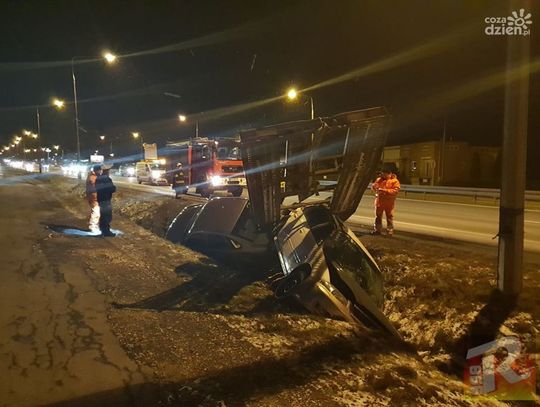 Laweta z autem wpadła do rowu