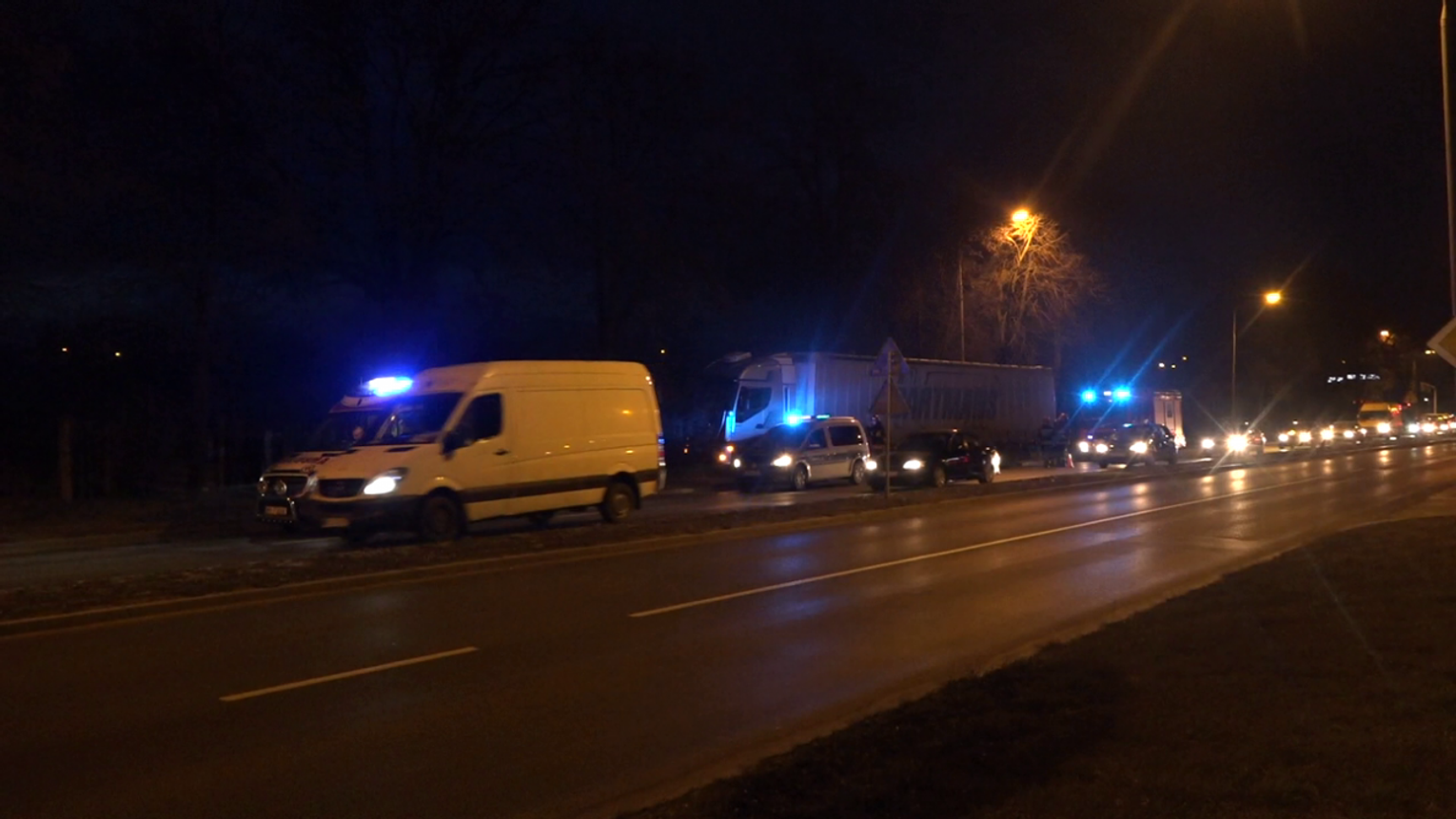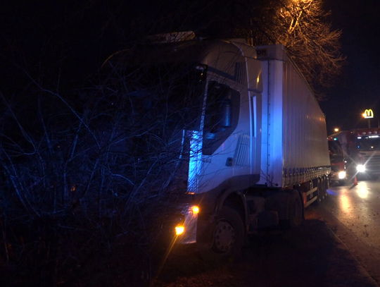 - Samochód ciężarowy uderzył w drzewo i zablokował jeden z pasów ruchu - powiedział dyżurny Państwowej Straży Pożarnej. - Kierowca pojazdu był przytomny, ale został zabrany do szpitala na obserwację.