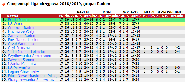 W doliczonym czasie gry w Warce padła jedna z dwóch najważniejszych bramek weekendu. Sprowadzony zimą z LKS-u Promna Kamil Oparcik w 94. minucie meczu zapewnił drużynie trenera Marcina Sikorskiego jeden punkt na terenie dotychczasowego lidera w Warce. Wcześniej dla gospodarzy trafił inny zimowy nabytek, Maksymilian Vogtman, który ma na swoim koncie już drugiego gola w drugim występie dla nowego klubu. Bramka dla gości oznaczała, że w przypadku wygranej jednej ze stron w meczu Centrum - Proch, KS Warka straci fotel lidera.