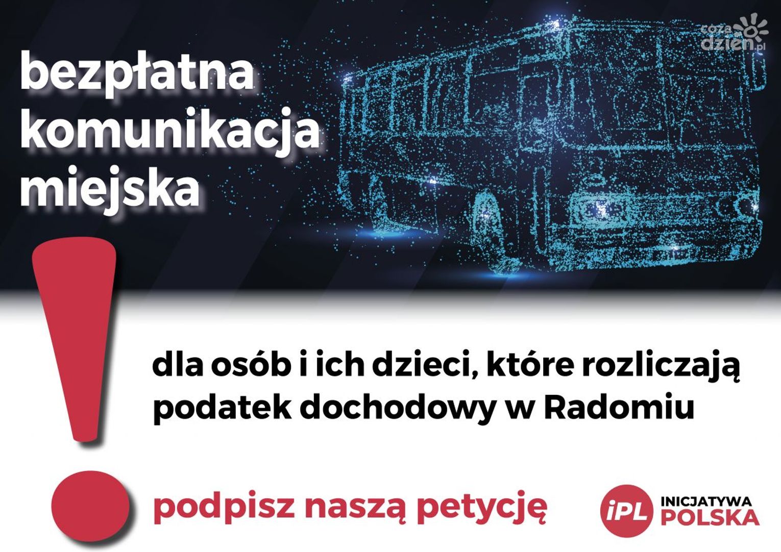 Bezpłatne przejazdy dla osób i ich dzieci, które rozliczają lub zdecydują się rozliczać swój podatek w mieście ma także wymiar ekonomiczny. Wiele osób, które dotychczas były mieszkańcami naszego miasta, w tej chwili mieszka w gminach ościennych, natomiast pracują lub ich dzieci uczą się w radomskich szkołach. Ulga, którą realizując petycję, zaproponujemy takim osobom, spowoduje „powrót” podatku od osób fizycznych do budżetu Radomia. To rozwiązanie przyciągnie również tych mieszkańców gmin, którzy będą chcieli korzystać z proponowanego przez nas ułatwienia. Aby korzystać z bezpłatnej komunikacji, a w przyszłości być może z innych udogodnień, wystarczy wypełnić odpowiedni formularz w urzędzie skarbowym. Cała procedura nie trwa dłużej niż kilka minut.