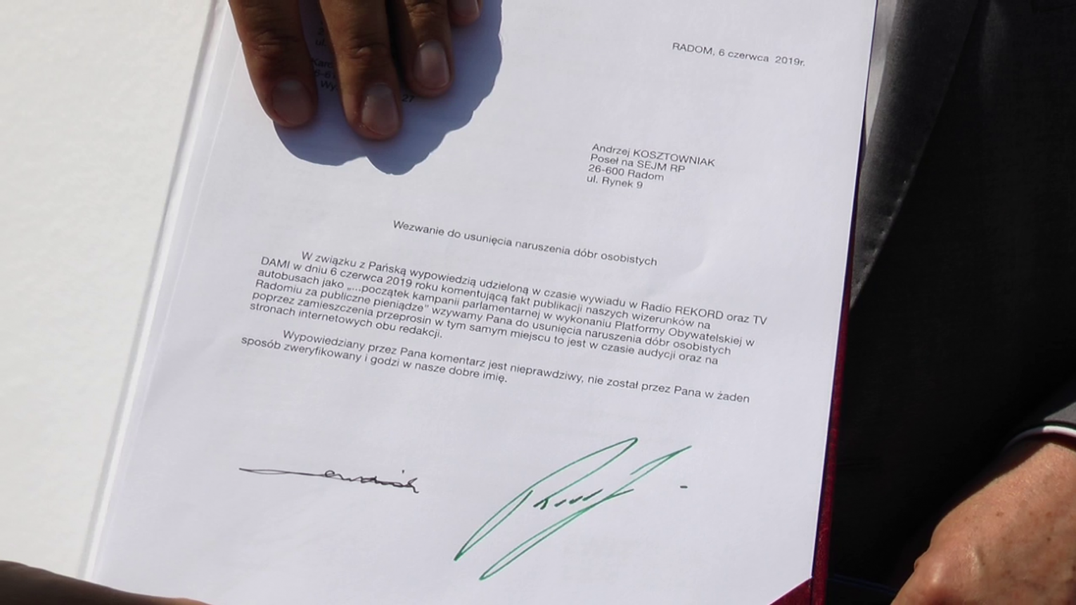 Do kampanii billboardowej na autobusach, odniósł się w porannej rozmowie Radia Rekord i TV Dami Andrzej Kosztowniak, poseł PiS. - Wydaje się, że w wydaniu Platformy Obywatelskiej w Radomiu jest to początek kampanii parlamentarnej za publiczne pieniądze i myślę, że to będzie pierwszy taki negatywny syndrom tej kampanii - stwierdził w porannej rozmowie poseł Andrzej Kosztowniak.