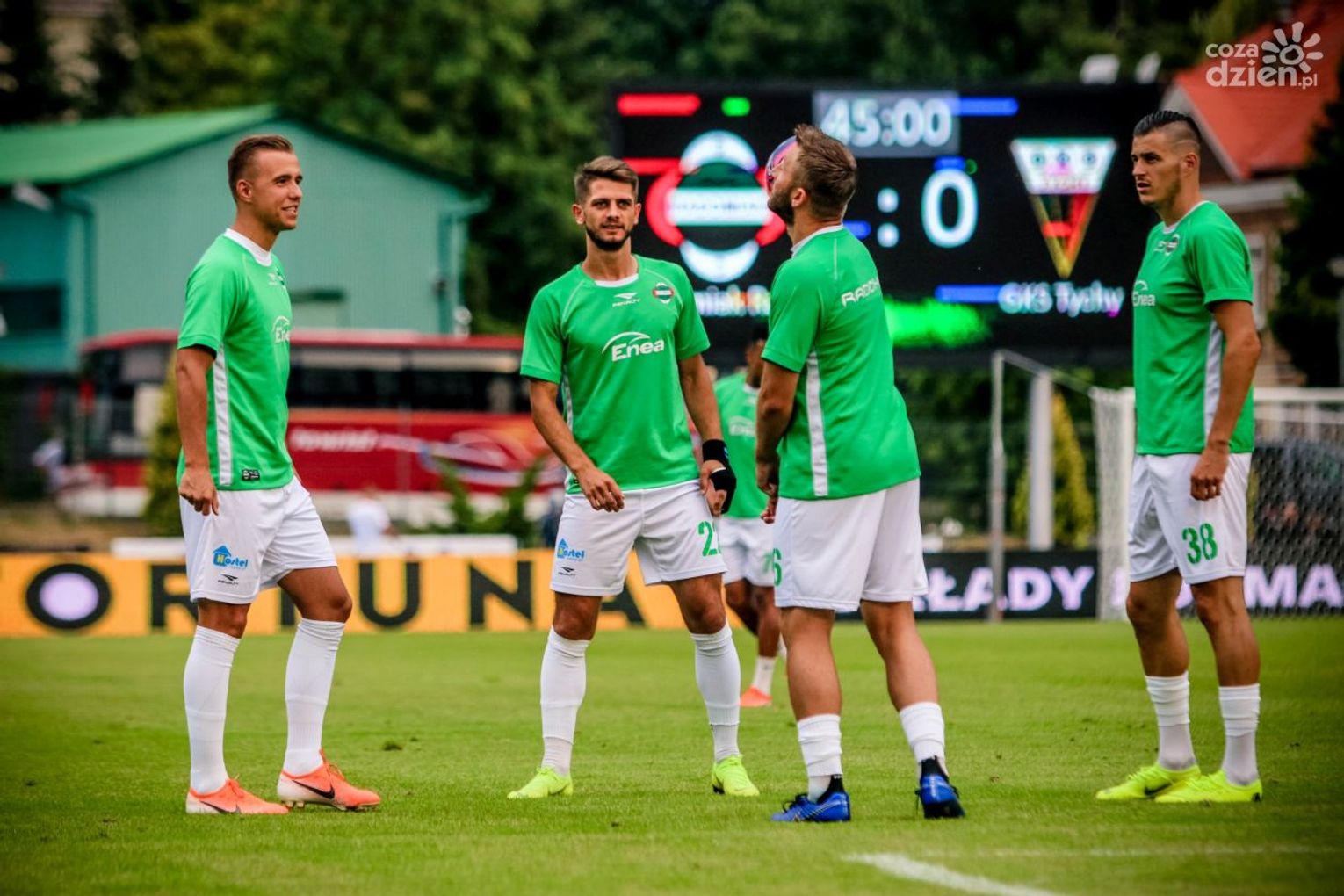 Piłkarze Radomiaka Radom we wtorek, 30 lipca, wznowili treningi przed meczem ze Stomilem Olsztyn. "Zieloni" tego dnia odbyli dwie jednostki treningowe: jedną na siłowni, drugą na boisku. W środowy poranek natomiast drużyna udała się do Jedlni-Letnisko, gdzie ćwiczyła na boisku w Kolonce. Do treningów z zespołem wrócił Mateusz Lewandowski, jednak urazu doznał inny obrońca, Kacper Pietrzyk.