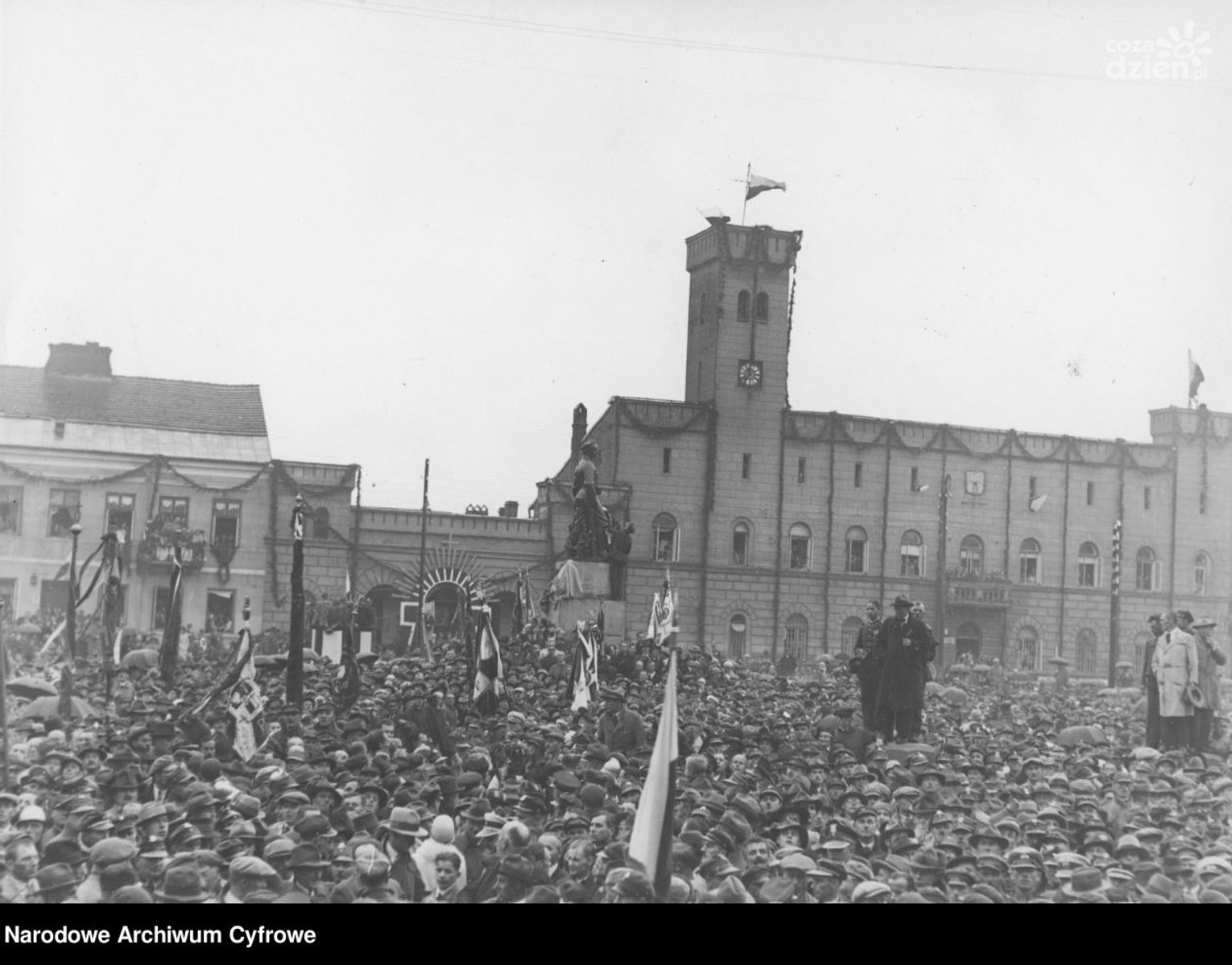 Pomnik Czynu Legionów odsłonięto dokładnie 10 sierpnia 1930 roku. Podczas IX Zjazdu Legionistów. Pomnik zaprojektował Wojciech Jastrzębowski. Wykonał go artysta Stanisław Ostrowski. Wzorem była - zgodnie z życzeniem marszałka Józefa Piłsudskiego - statuetka młodego legionisty wykonana przez dowódcę IV Kompanii V Pułku Legionów Polskich Włodzimierza Koniecznego. Ale w 1930 roku odsłonięto pomnik odlany z patynowego gipsu. Komitet nie zabrał na czas wszystkich funduszy, stąd taki scenariusz. Pomnik odlany z brązu stanął cztery lata później. IX Zjazd Legionistów zorganizował Komitet Obywatelski w składzie: Jerzy Paciorkowski, wojewoda kielecki – Zdzisław Maćkowski, starosta radomski i rotmistrz Michał Tadeusz Brzęk- Osiński, prezes oddziału Związku Legionistów. Mszę święta na Rynku odprawił biskup kielecki Władysław Bandurski. Na radomskim Rynku w uroczystościach wzięło udział około 8 tysięcy osób. W czasie uroczystości poświęcono trzy sztandary i odsłonięto pomnik "Czynu Legionów". Stanął on w miejscu, gdzie w 1863 roku władze carskie wzniosły szubienicę, na której wieszały bohaterów powstania styczniowego. Idea postawienia pomnika zrodziła się w 1923 r. po ekshumacji pochowanych w Białymstoku szczątków Józefa Marjańskiego. Na Zjazd Legionistów przybyli oprócz marszałka Józefa Piłsudskiego, premier płk Walery Sławek (prezes Związku Legionistów), gen. Felicjan Sławoj-Składkowski, gen. Edward Śmigły-Rydz, gen. M. Norwid-Neugebauer, gen. Stanisław Burhardt-Bukacki. Marszałek stojąc na podwyższeniu przy wejściu do gmachu popijarskiego, przy dźwiękach marsza "Pierwszej Brygady" przyjął defiladę kompanii honorowej 72 pułku piechoty, poczty sztandarowe, legionistów i harcerzy.