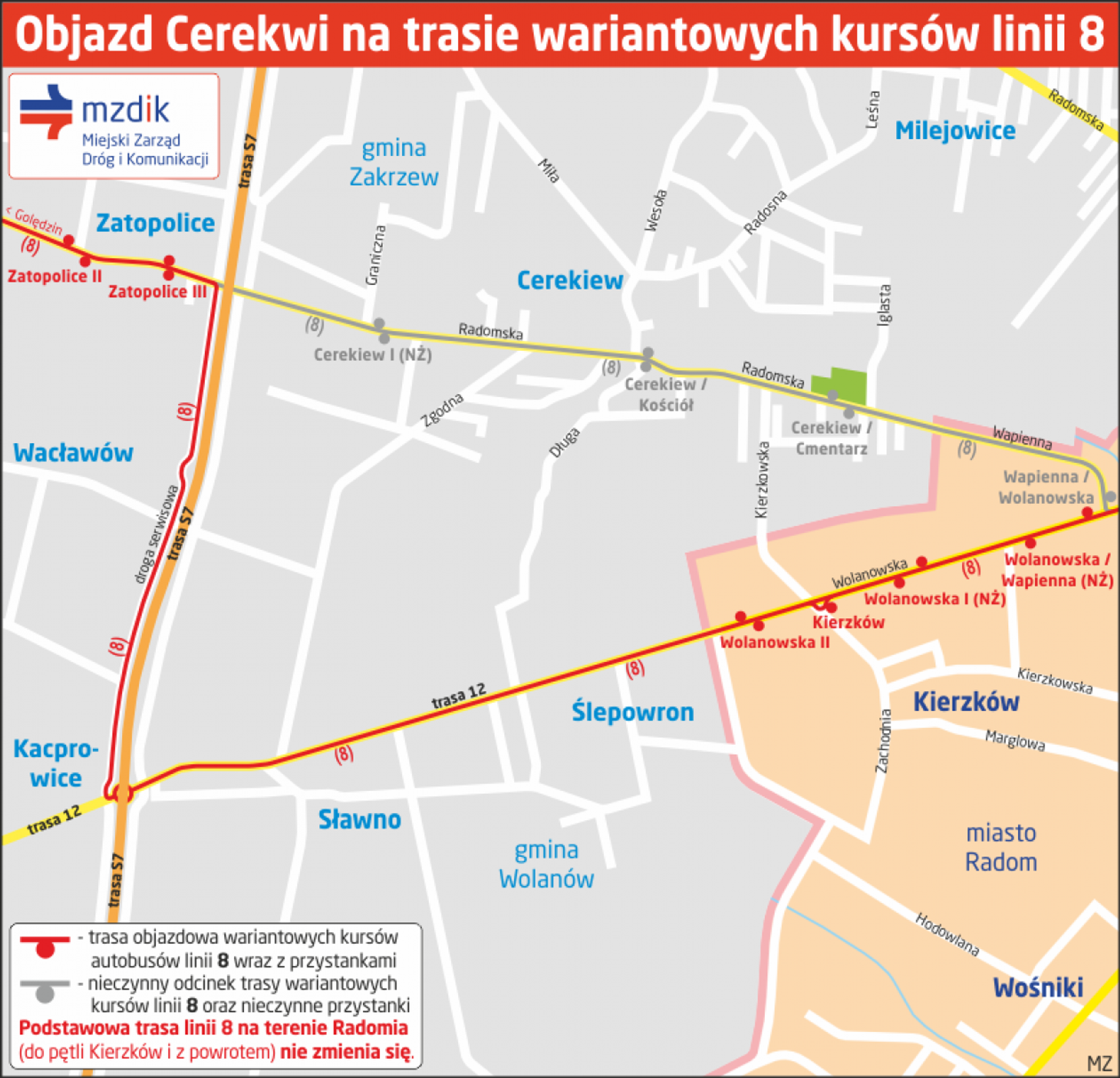 Inwestorem przebudowy drogi w Cerekwi jest Powiatowy Zarząd Dróg Publicznych w Radomiu. Miejski Zarząd Dróg i Komunikacji w Radomiu nie zarządza drogami poza granicami administracyjnymi miasta.