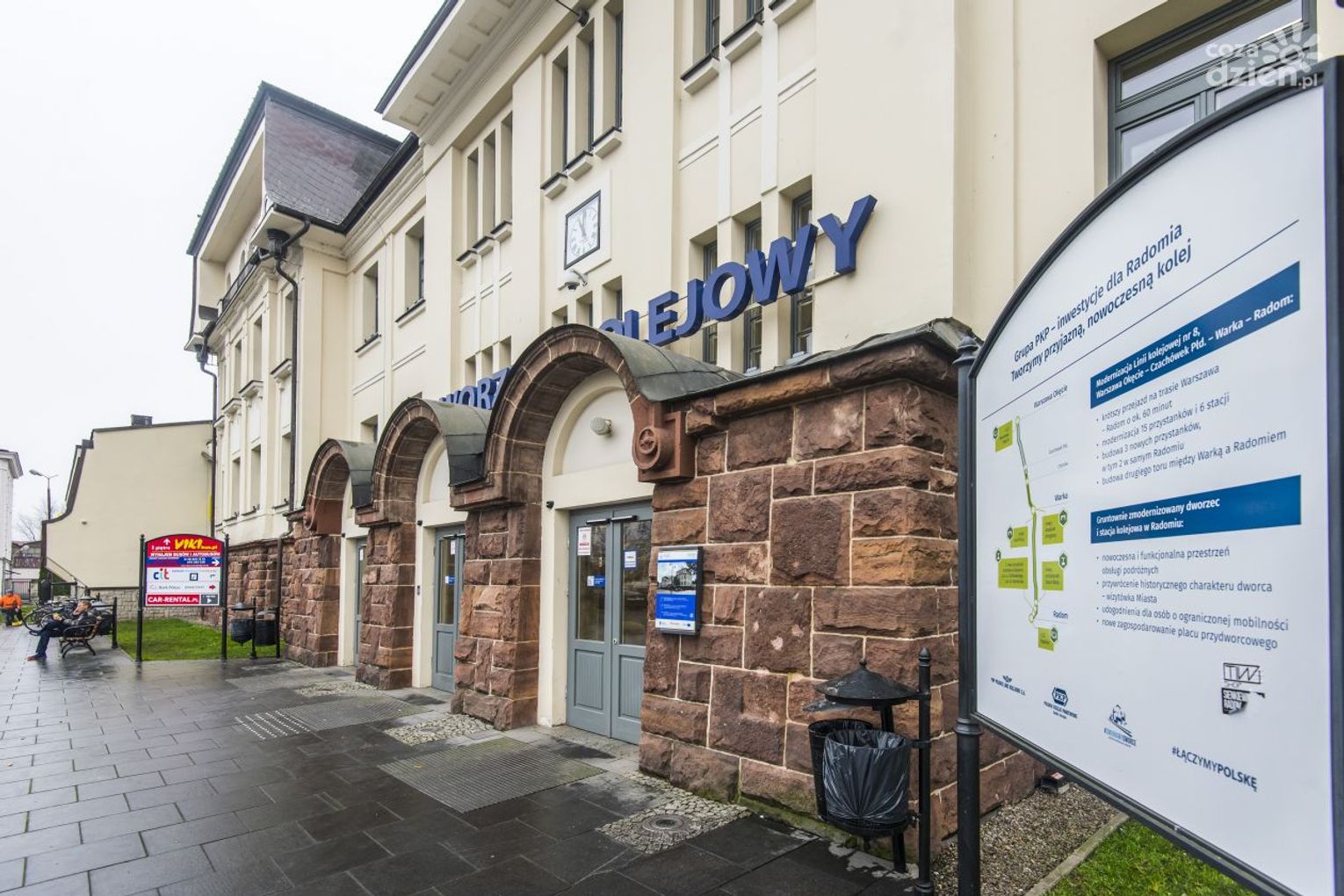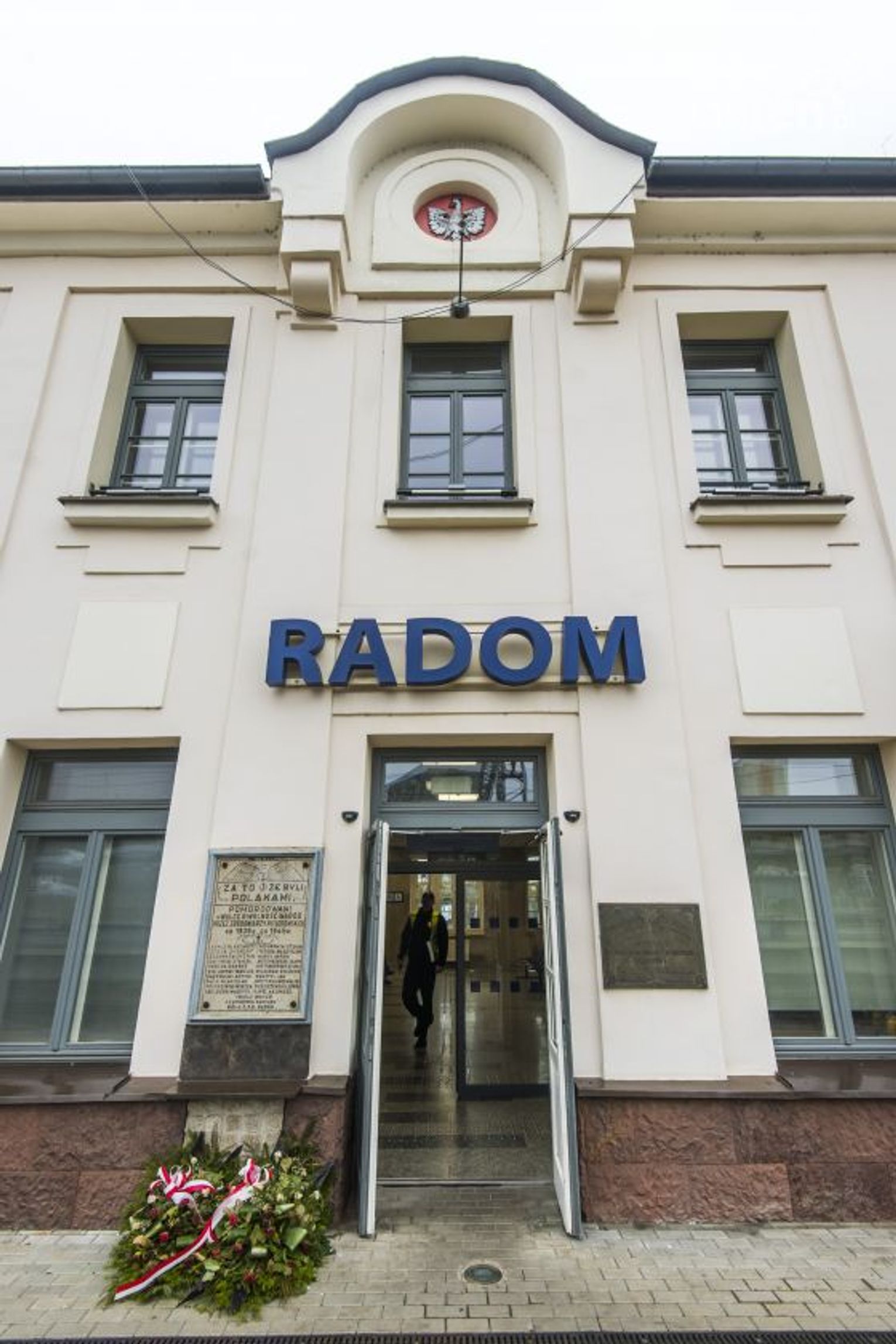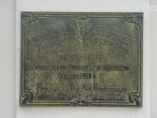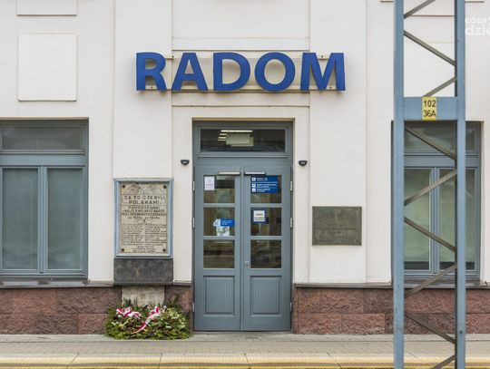 W budynku znajduje się tablica upamiętniająca radomskich kolejarzy zamordowanych przez Niemców w latach 1939–1945. W naczółku budynku stacji kolejowej widnieje herb Radomia.