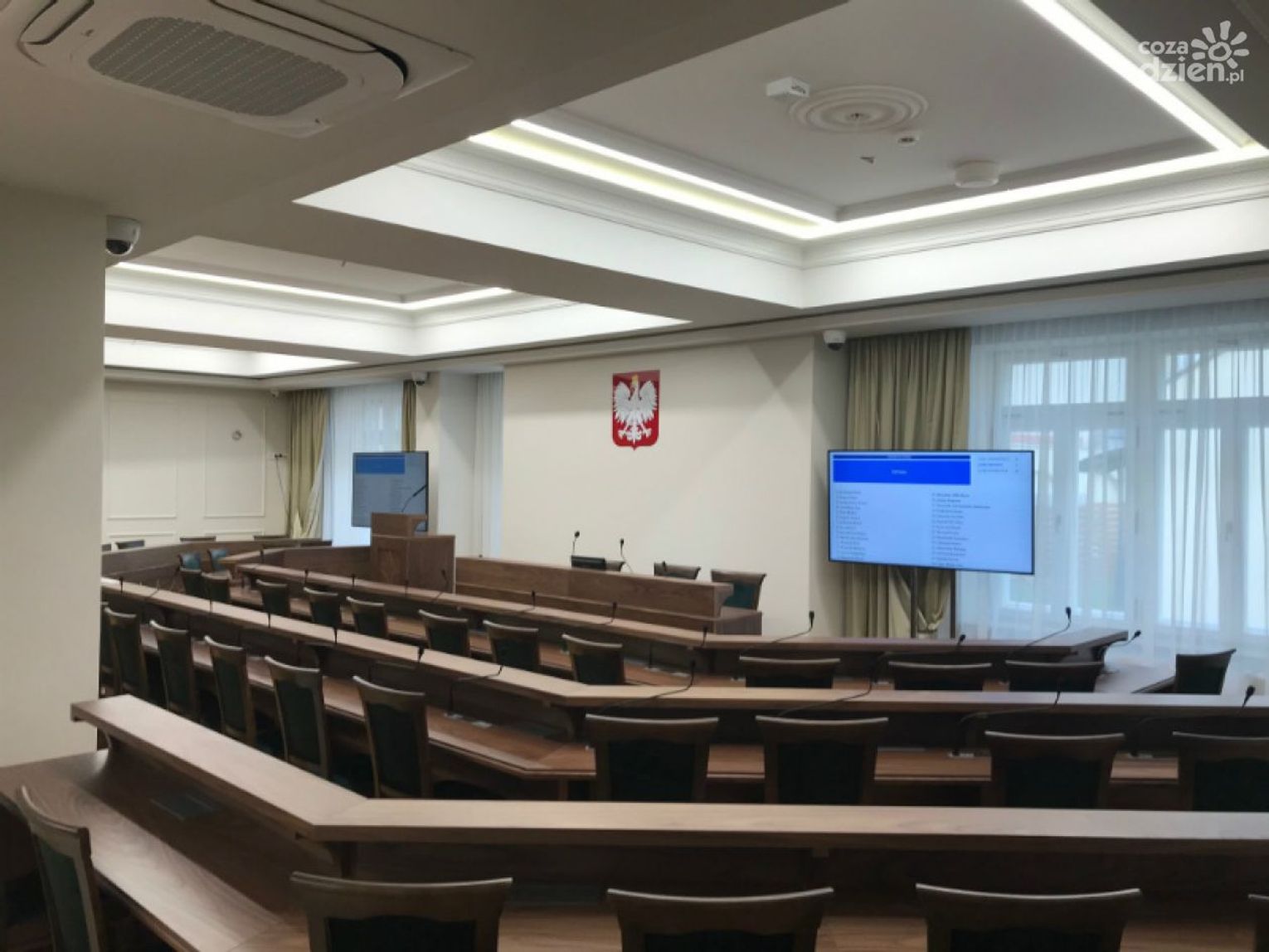 Sala obrad została wyposażona w zupełnie nowe, przygotowane na wymiar meble. Jest też zamontowany nowy system głosowania oraz urządzenia umożliwiające prowadzenie transmisji z przebiegu obrad.