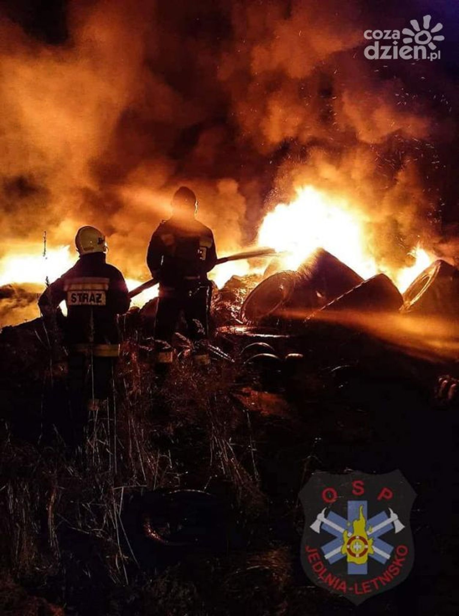 Do pożaru doszło w środę, 8 stycznia około 2.00 - Po przybyciu na miejsce dwie nasze roty zostały skierowane równolegle do gaszenia pożaru oraz obrony dalszej części składowiska przed objęciem go ogniem. Działania utrudniał gęsty, gryzący dym, unoszący się nad miejscem pożaru – poinformowali strażacy z OSP Jedlnia-Letnisko.