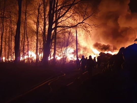 Strażacy rozwinęli 30 linii gaśniczych, w tym jedna ma ponad kilometr długości. Na miejscu panują trudne warunki do gaszenia, jest silne zadymienie.