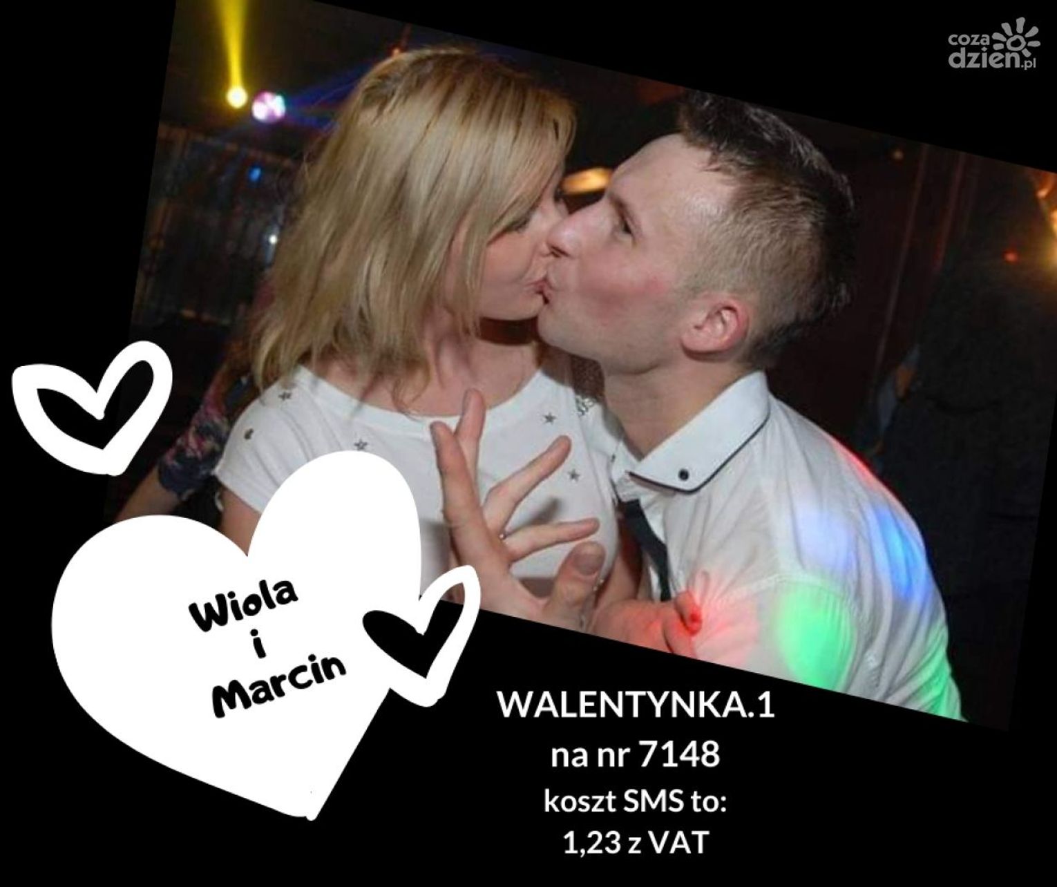 1. Wiola i Marcin SMS o treści "WALENTYNKA.1" pod numer 7148. Koszt SMS to 1,23 zł z VAT.