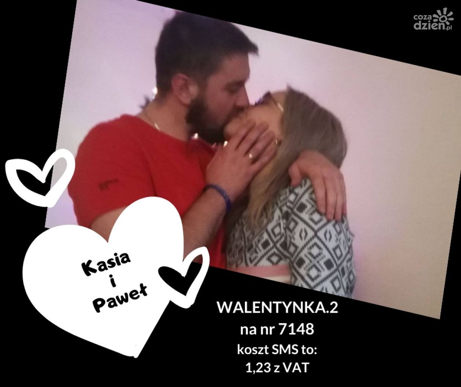 2. Kasia i Paweł SMS o treści "WALENTYNKA.2" pod numer 7148. Koszt SMS to 1,23 zł z VAT.