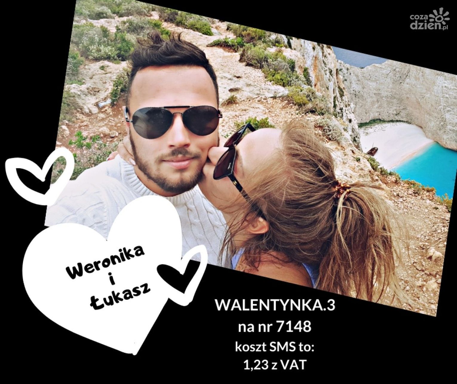 3. Weronika i Łukasz SMS o treści "WALENTYNKA.3" pod numer 7148. Koszt SMS to 1,23 zł z VAT.