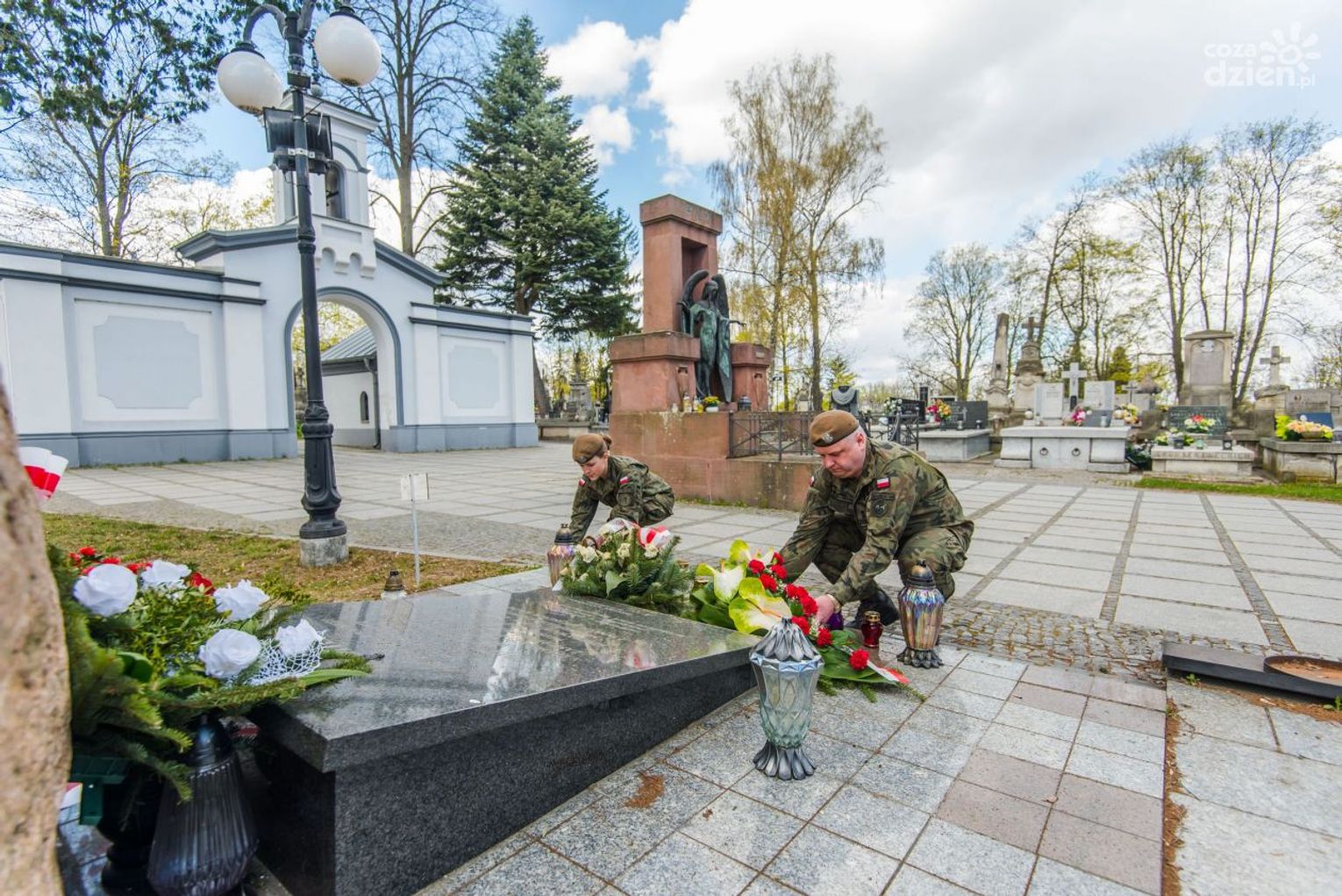 Żołnierze WOT złożyli wiązankę kwiatów i zapalili znicz pod Pomnikiem Katyńskim, znajdującym się na Cmentarzu Rzymskokatolickim w Radomiu.