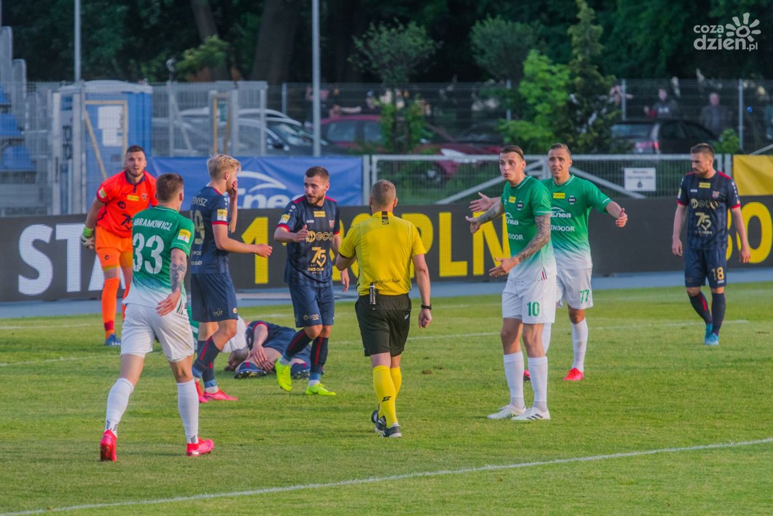 Żółte kartki: Leandro, Lewandowski - Czyżycki.