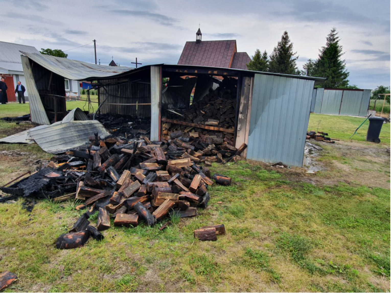 Po otrzymaniu zgłoszenia przez lipską straż pożarną na miejsce zostały wysłane 3 zastępy z Jednostki Ratowniczo-Gaśniczej z Lipska oraz 3 zastępy z jednostek OSP (Jawor Solecki, Jaworska Wola, Pawliczka). Po dojeździe na miejsce zdarzenia stwierdzono, że pożarem objęty jest garaż metalowy oraz wiata wypełniona drewnem. Działanie zastępów polegały na zabezpieczeniu miejsca zdarzenia, podaniu dwóch prądów wody w natarciu na palący się obiekt. Po przygaszeniu pożaru i oddymieniu garażu odnaleziono ciało mężczyzny. Przybyły na miejsce zdarzenia lekarz Pogotowania Ratowniczego stwierdził zgon.