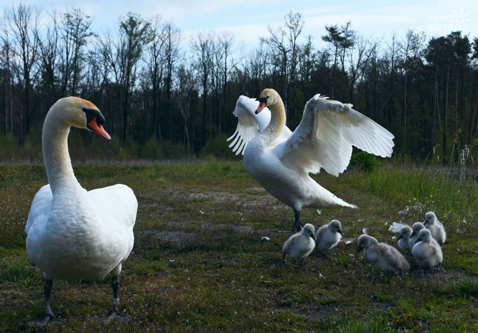 - Zbiorniki, szczególnie Trzy Stawy, są chętnie odwiedzane, zwłaszcza przez osoby interesujące się ornitologią i fotografią przyrodniczą. Choć ptaki są przyzwyczajone do obecności ludzi, leśnicy apelują o ostrożność i właściwe zachowanie. Teraz wysiadują jaja i prowadzą młode, a ich płoszenie może powodować straty w lęgach – ostrzega Edyta Nowicka. - W Trzech Stawach nie można łowić ryb, wszelkie śmieci najlepiej zabrać ze sobą, a psy należy trzymać na smyczy. Warto też uszanować przyrodę i zachować ciszę. Wtedy jest szansa na obserwację łabędzi; ale nie należy ich karmić. Mamy tu także kaczki krzyżówki, które uwielbiają szukać pokarmu na przepławce, łyski, rybitwy, trzciniaki, jaskółki i wiele innych gatunków. W pobliżu bytują też bobry.