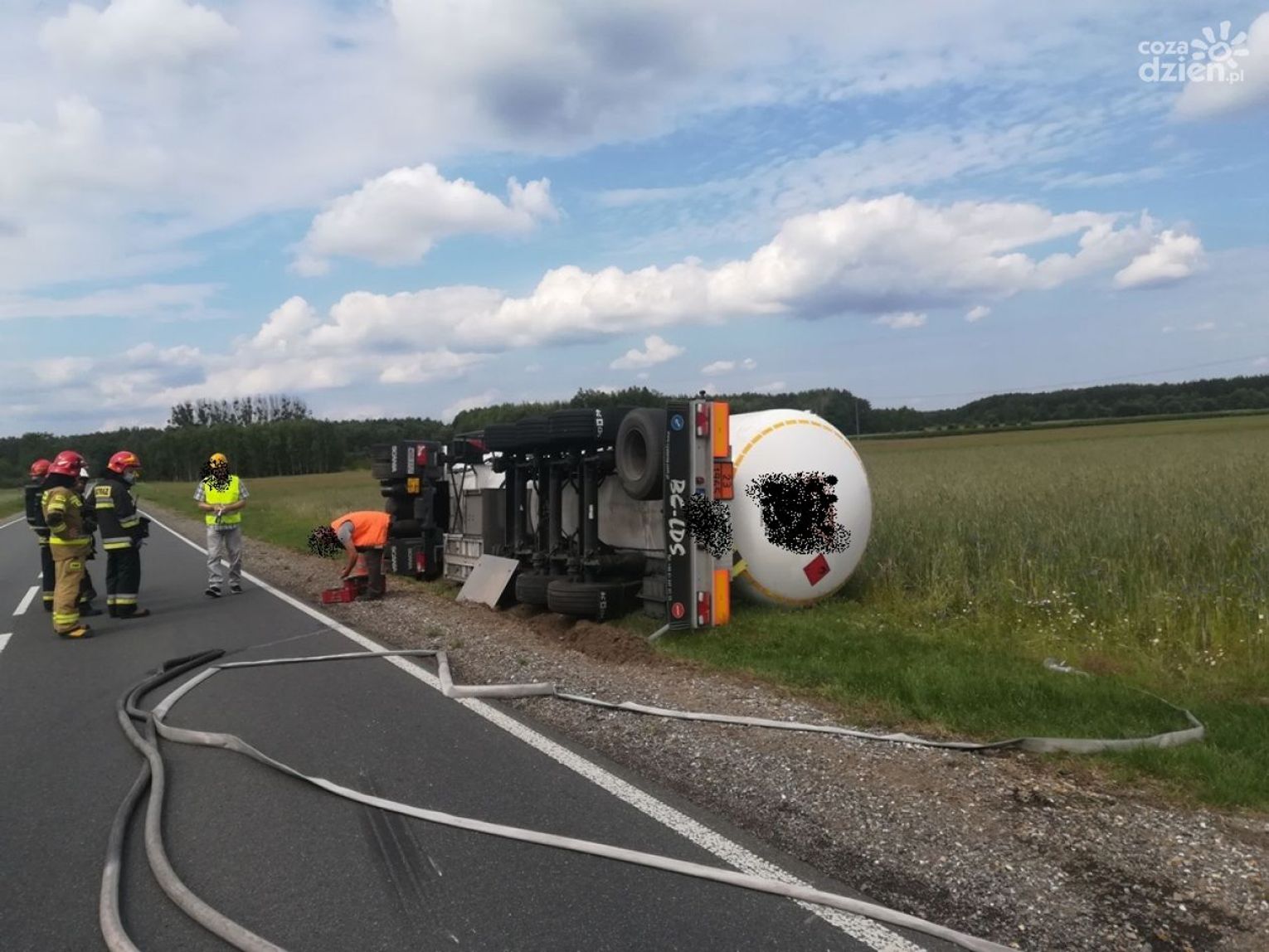 Pracujący do późnych godzin na miejscu policjanci i strażacy dbali o to, aby miejsce zdarzenia było należycie zabezpieczone oraz o to, aby wyznaczone objazdy umożliwiły płynny ruch na drodze.