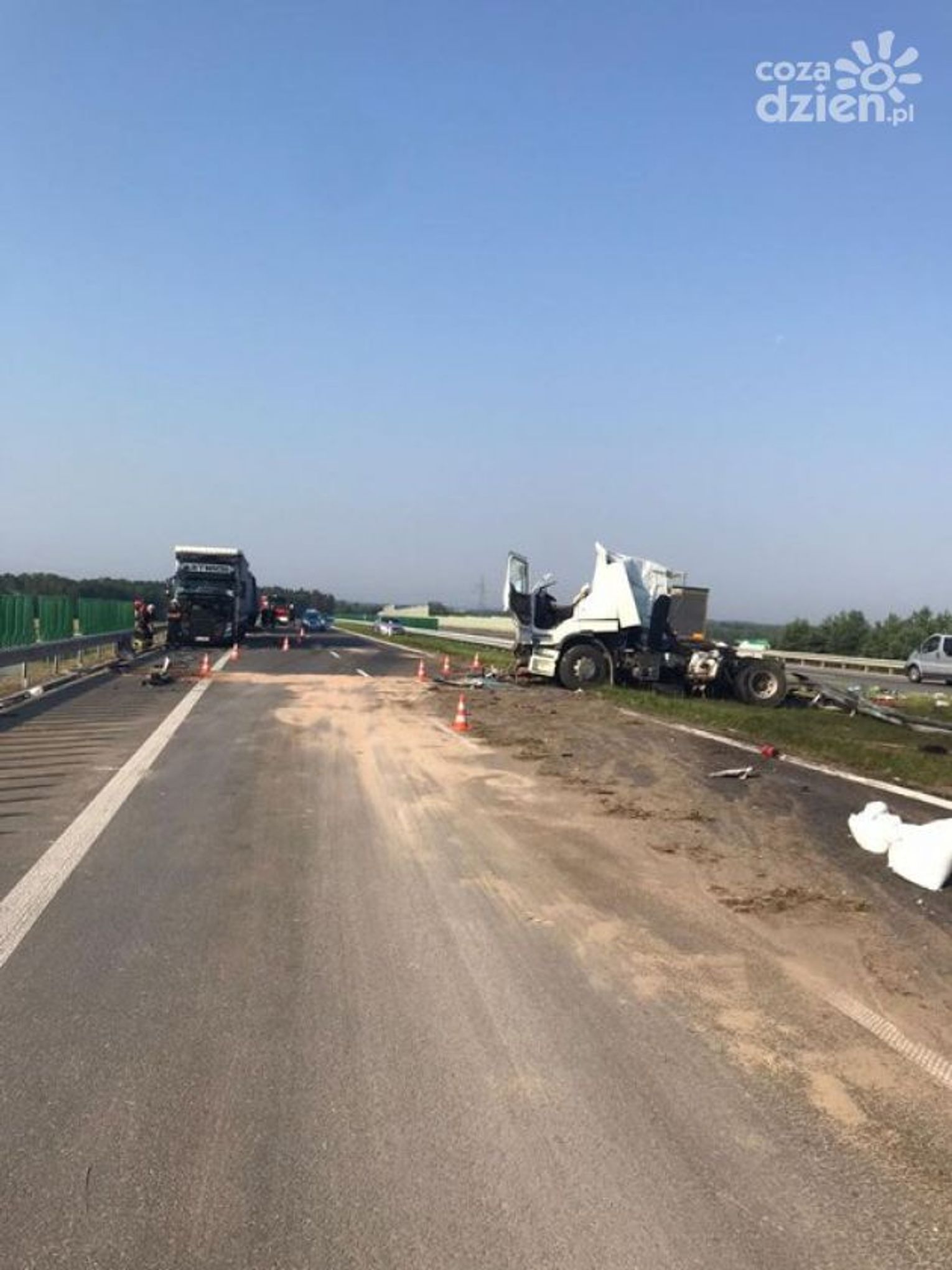 - Na pasie awaryjnym stały dwa samochody ciężarowe. Na tył stojących pojazdów najechał trzeci pojazd ciężarowy. Pojazd odbił się i zjechał na przeciwległy pas ruchu w kierunku Kielc. Tym samym zablokował jeden pas ruchu w kierunku Kielc. W ciężarówce przewożony był sypki materiał, który wysypał się na jezdnię. Po podniesieniu pojazdu ciężarowego przez specjalistyczny dźwig i po pełnym uprzątnięciu, droga jest już przejezdna w obydwóch kierunkach - informuje podinsp. Katarzyna Kucharska, rzecznik KWP zs. w Radomiu.