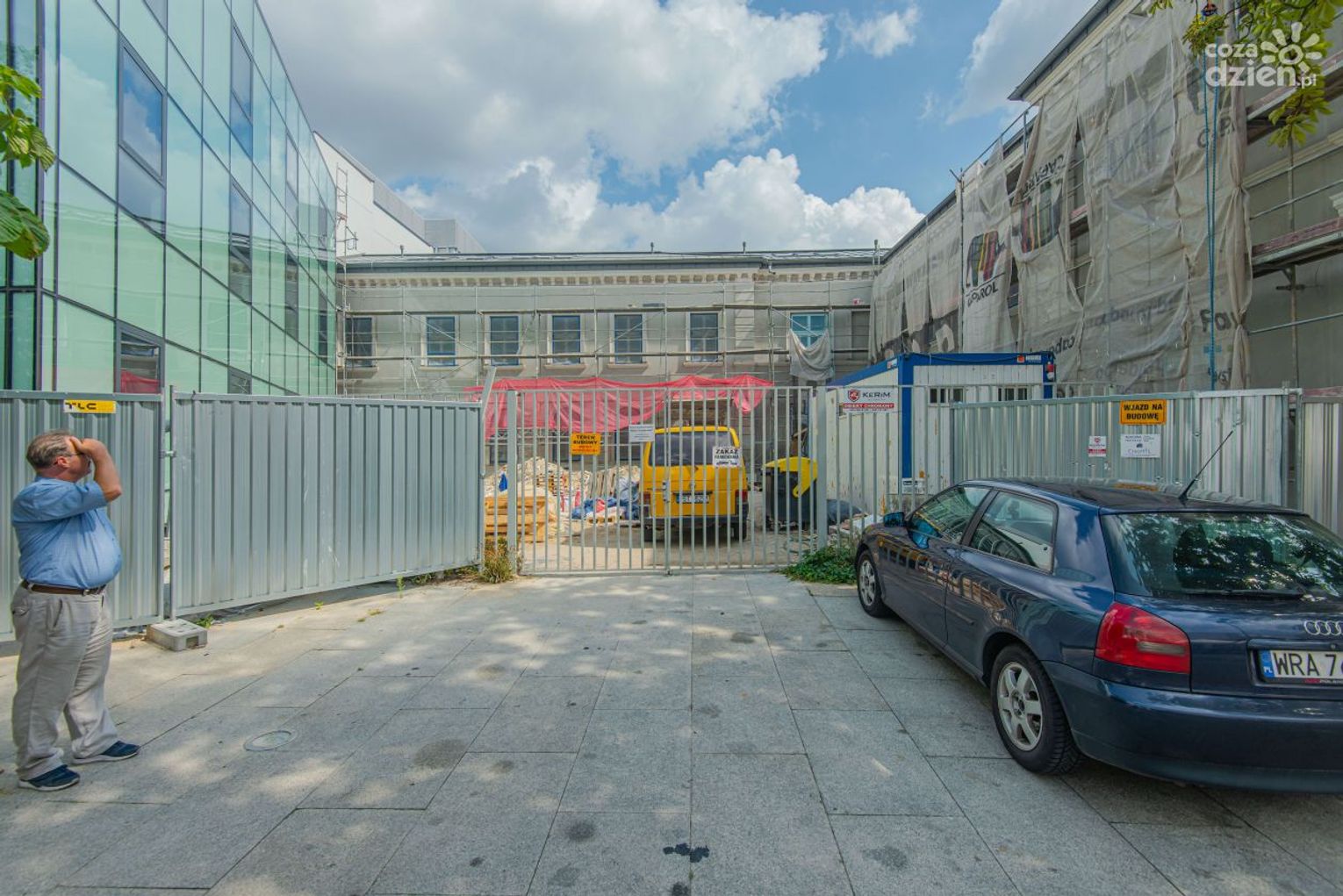 Od czerwca z każdym dniem przy ul. Żeromskiego i Kilińskiego było mniej robotników. Jak się dowiedzieliśmy nieoficjalnie, wykonawcy poszczególnych etapów kończyli prace, ale nikt nie zaczynał nowych. W zasadzie sama bryła przyszłego hotelu jest już skończona. W tej chwili na placu budowy pracuje kilka osób przy elewacji.