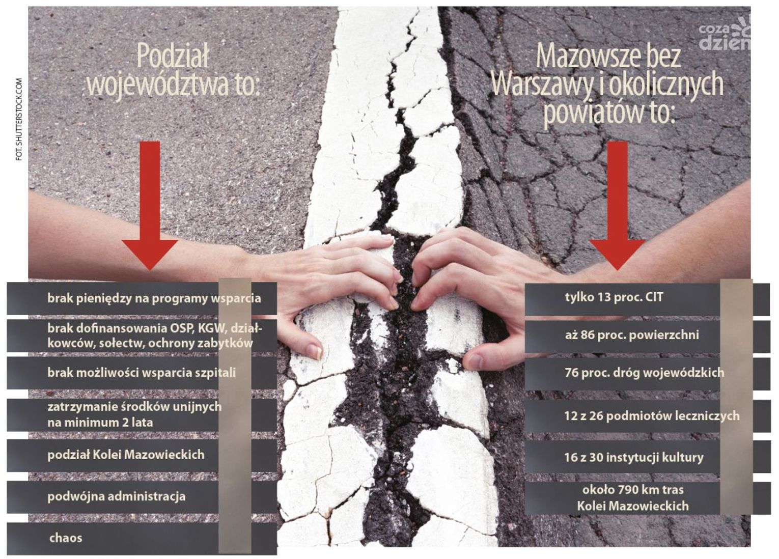 Mazowsze bez serca, czyli bez centralnej części – Warszawy i okolicznych powiatów, nie będzie mogło pozwolić sobie na tak ważne dla mieszkańców wsparcie. A to właśnie stolica z obwarzankiem generuje wysokie dochody regionu. Jak wynika z analiz urzędu marszałkowskiego, firmy z aglomeracji warszawskiej zapewniają aż 87 proc. dochodów województwa z podatku CIT. To właśnie w stolicy i sąsiadujących powiatach jest w sumie 75 proc. firm krajowych i zagranicznych! Są one impulsem rozwojowym Mazowsza. Najważniejszy dochód województwa, czyli podatek CIT, wyniósłby w nowym województwie zaledwie 13 proc. obecnych wpływów z tego tytułu.